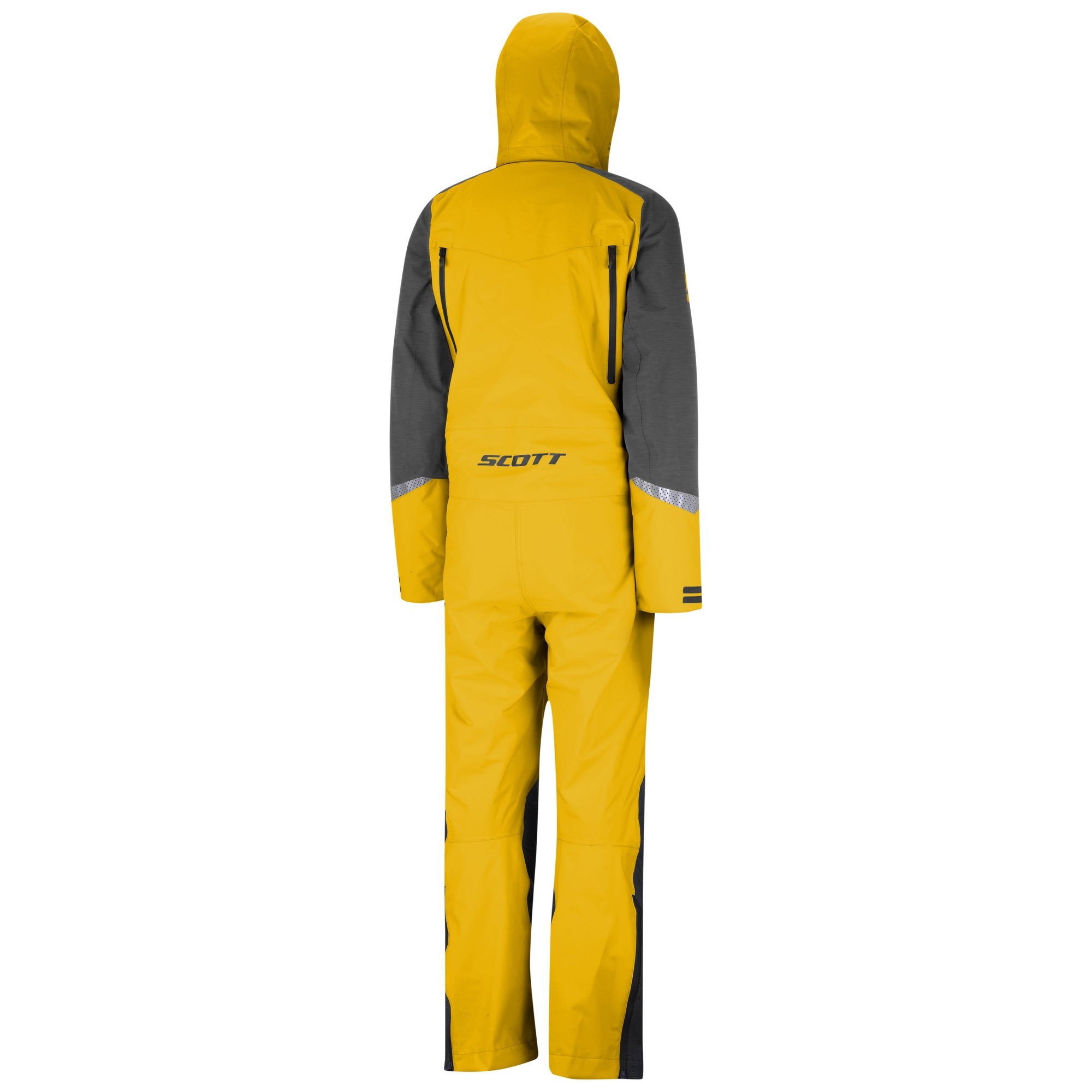 Стильный комбинезон DS Shell DRYO фирмы Scott выполнен в ярком чёрно-жёлтом дизайне и обеспечивает защиту во время катания на снегоходе, каким бы глубоким ни был снег. Костюм изготовлен из прочной двухслойной ткани с проклеенными швами. Верхний слой оснащен ветро- и влагонепроницаемой дышащей мембраной DRYOsphere 2L, а также прямыми клапанами вентиляции. Внутри находится несъёмный утеплитель с термовставками в области колен и ягодиц и дышащая сетчатая подкладка. Все молнии изготовлены по технологии WaterR и не пропускают воду. Основная молния расстегивается в двух направлениях.