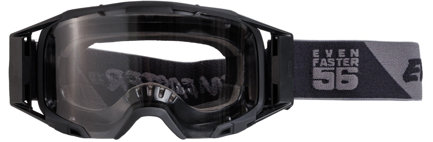 Мотоочки для кросса EF56 Base предлагают увеличенный угол обзора для лучшей видимости на трассе. Регулируемая "вязаная" резинка шириной 45 мм с тремя силиконовыми дорожками надежно фиксирует очки на шлеме. Очки имеют крепление для отрывников (грязезащитных пленок) и съемной защиты носа. Кроме того, они адаптированы под очки OTG, имея выемки под душки очков для использования с диоптриями.
