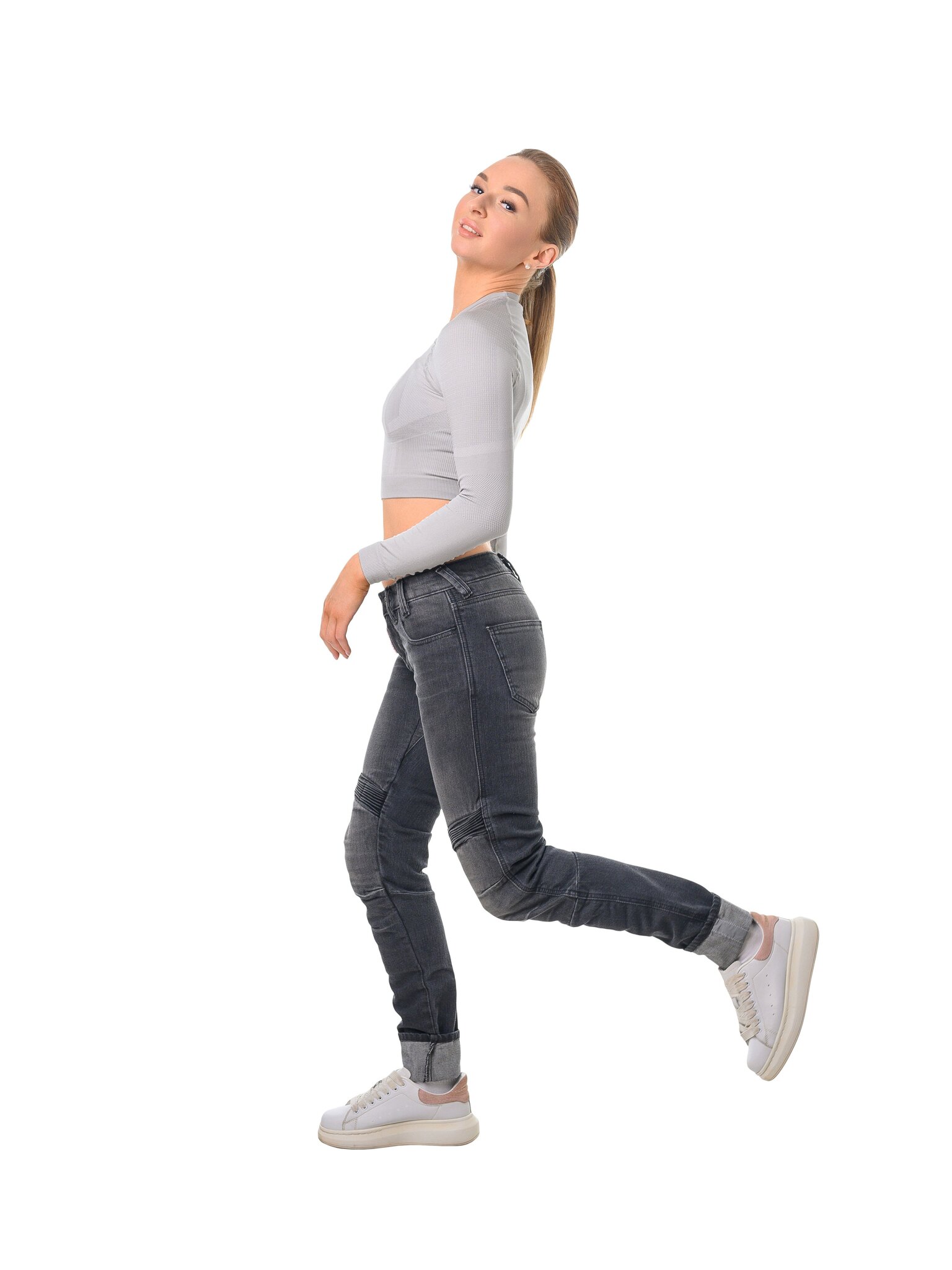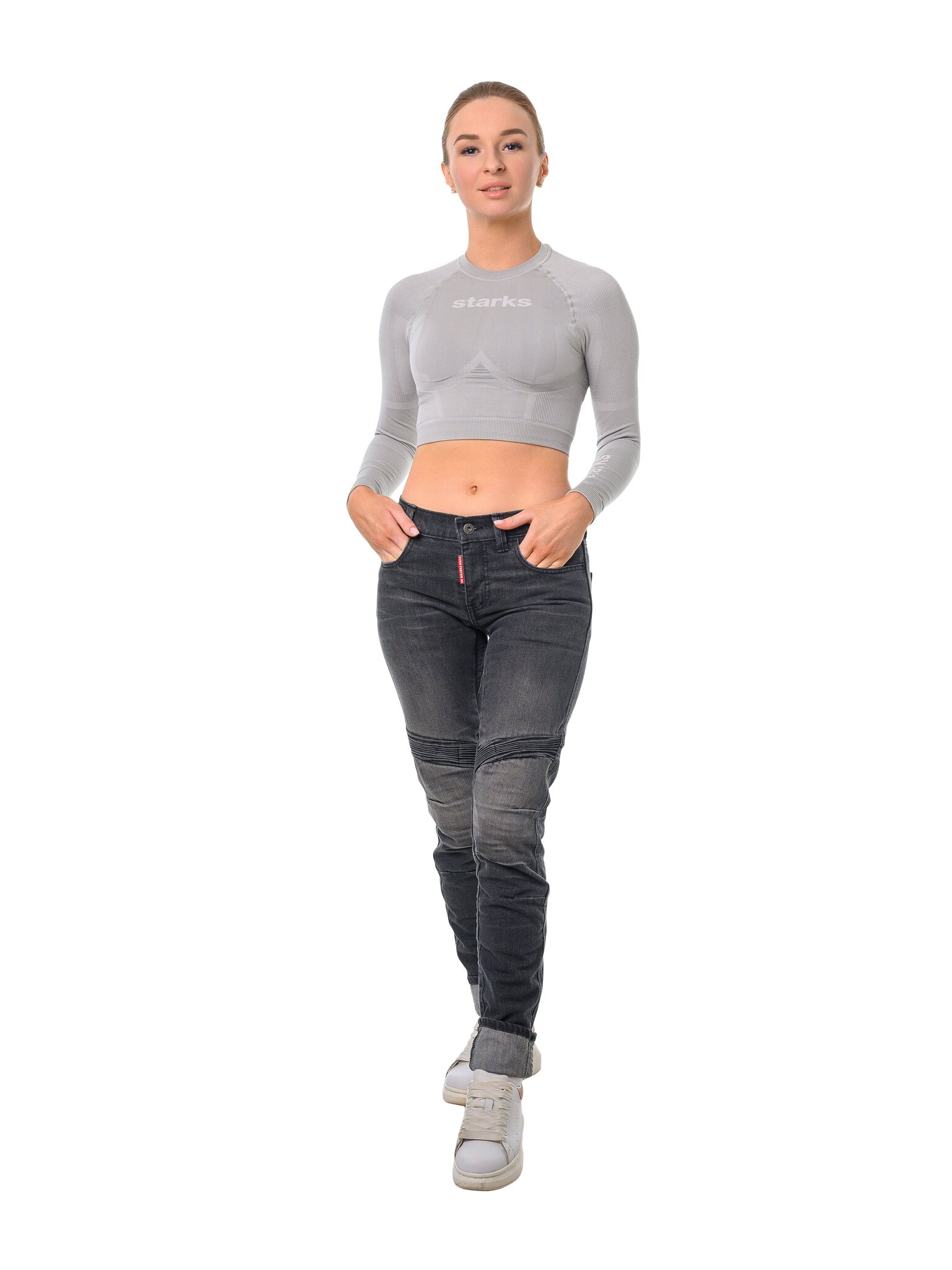 Женские мотоджинсы STARKS SNAKE сшиты из сертифицированной ткани CORDURA DENIM® STRETCH и продублированы патентованным текстилем 3ATEX®, который противостоит истиранию эффективнее, чем кевлар. Для защиты коленей используются съемные и регулируемые по высоте протекторы из полиуретана с памятью формы. Защита сертифицирована на соответствие требованиям евростандарта на уровне CE LEVEL 2.