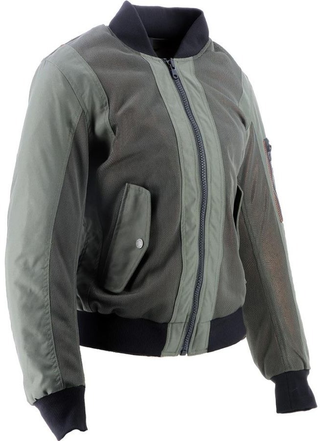 Женская сетчатая куртка Helstons Elisa Air цвета хаки идеально подходит для лета благодаря большим вставкам из воздушной сетчатой ткани.