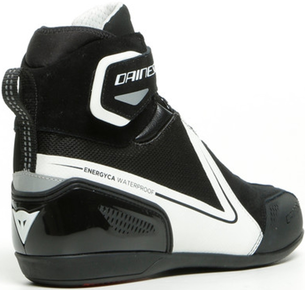 Женские кожаные мотоботы короткие Dainese Energyca D-WP в потрясающем черно-белом дизайне. Предназначены для повседневных поездок и шоссейного мотоспорта при любых погодных условиях и по любым маршрутам. Выполнены из прочной воловьей кожи и идеально сочетаются с фирменной спортивной экипировкой Dainese. Отлично вентилируются и полностью водонепроницаемы за счет мембранных вставок D-WP.