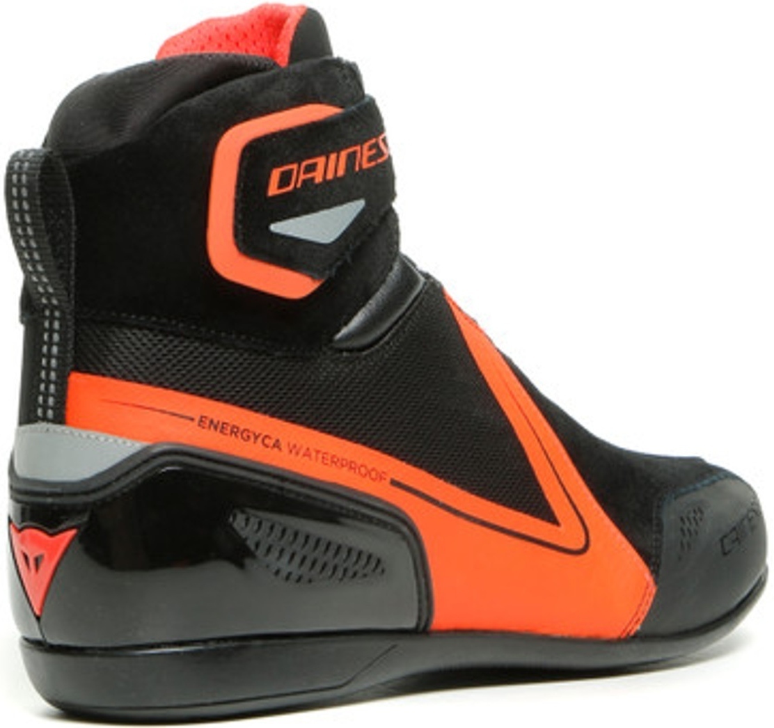 Женские кожаные мотоботы короткие Dainese Energyca D-WP красно-черного цвета. Созданы для дам, которые ценят в урбанистической спортивной обуви не только комфорт и безопасность, но и индивидуальный стиль. Изготовлены из прочной воловьей замши кожи, защищенной от истирания в случае падения и последующего скольжения по асфальту. Удобные, комфортно садятся по ноге, надежно фиксируются шнуровкой и ремешками. Дышащая мембрана D-WP отталкивает влагу, поэтому в случае дождя ноги остаются сухими и теплыми.