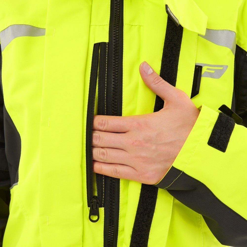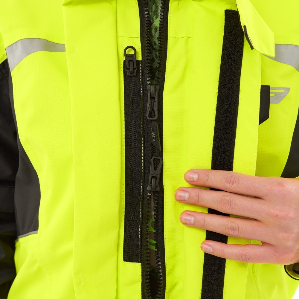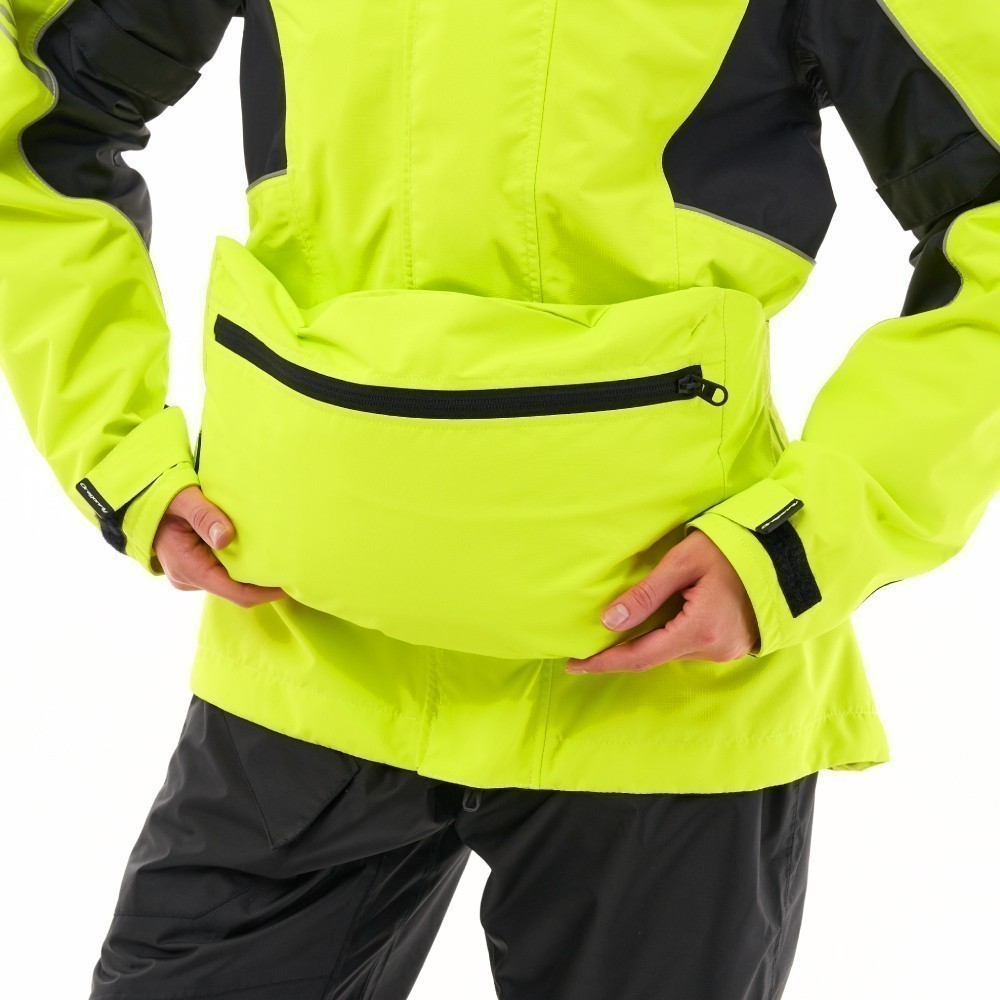 Модель EVO Woman адаптирована под особенности женской фигуры и легко надевается поверх основной экипировки. Система утяжек на предплечьях, запястьях и талии сводит к минимуму парусность на высоких скоростях. Ярко-желтый цвет в сочетании со светоотражающими элементами делает вас заметнее на дороге, что подтверждают многочисленные отзывы покупателей. В обновленной версии 2026 года увеличен объем в области шеи, доработана фурнитура капюшона и улучшен внутренний вид изделия. Приятным бонусом станет наличие защиты в комплекте и специального чехла для шлема, скрытого в высоком мягком вороте.