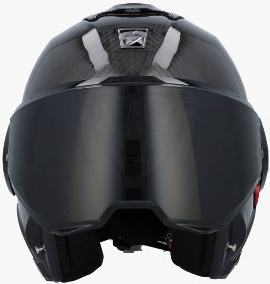 Главное преимущество — поворотная назад подбородочная дуга. В отличие от классического откидного шлема для мотоцикла, она полностью уходит назад, улучшая аэродинамику и баланс веса. Даже в открытом положении можно ехать с опущенным внешним визором. Карбоновая оболочка обеспечивает высокую прочность при минимальном весе, а двойная сертификация позволяет использовать шлем как закрытый и открытый. Встроенный солнцезащитный визор и Pinlock защищают от бликов и запотевания в любую погоду.