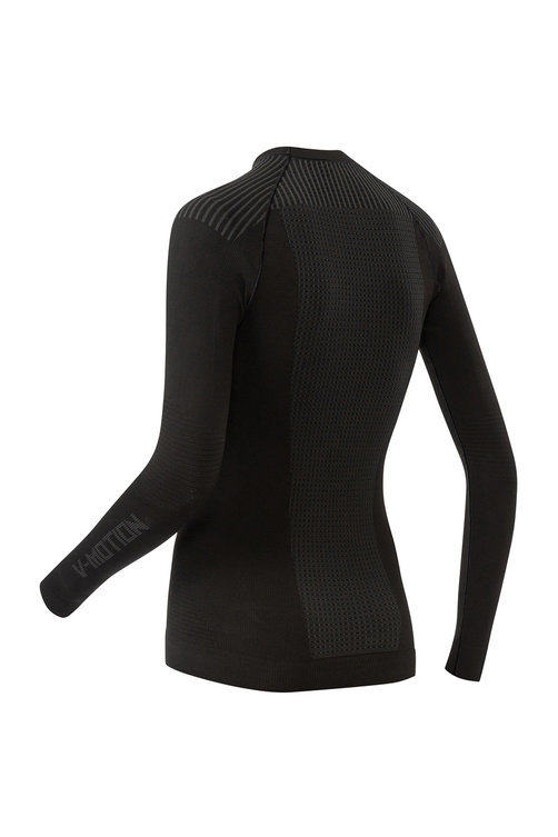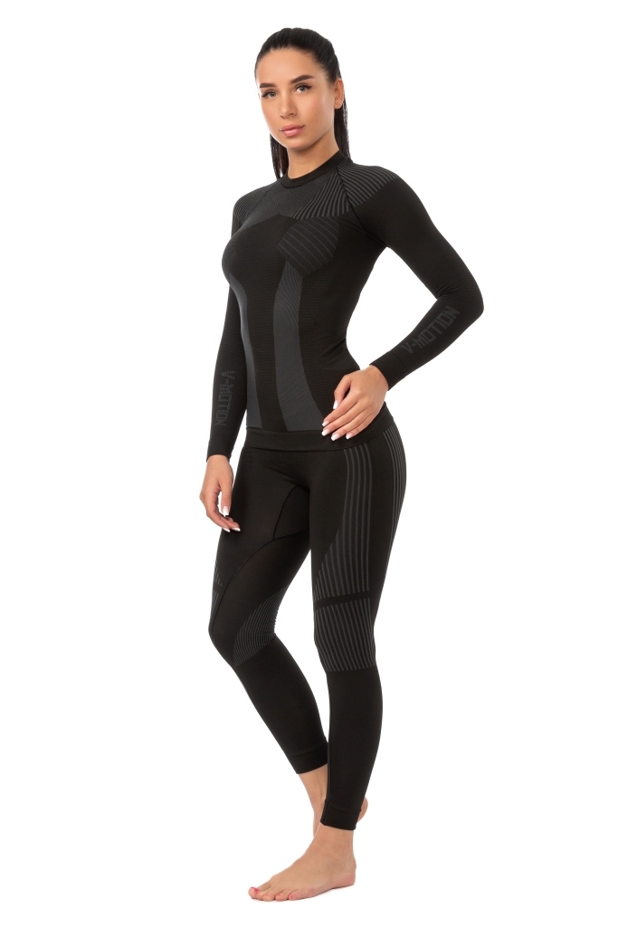 Высококачественное женское термобелье V-Motion F10 создано для райдеров и других пользователей, ведущих активный образ жизни. В комплект входят обтягивающие леггинсы и футболка с длинным рукавом, которые выполнены в универсальном черном цвете. Нательная одежда изготовлена методом бесшовной вязки из износостойкого полипропиленового волокна Dryarn с добавлением эластана. Материал обладает гипоаллергенным и бактериостатическим свойствами, поэтому не вызывает раздражения и препятствует размножению и росту вредных микроорганизмов. Специальное плетение ткани с использованием технологии Dehydration System обеспечивает комфортную внутреннюю температуру за счет вытеснения образовавшейся влаги на внешний слой.