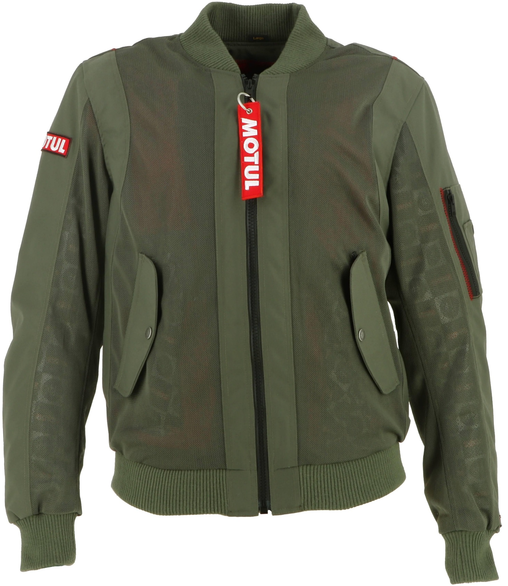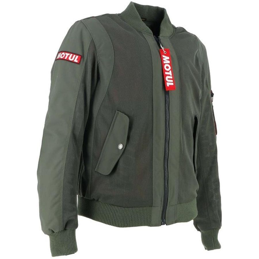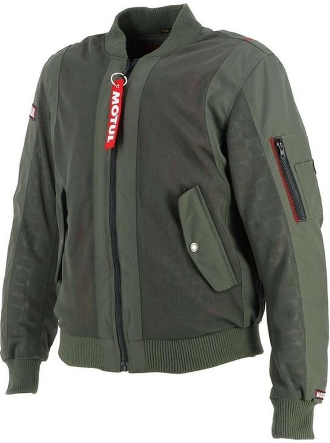 Эта мужская куртка Helstons Falcon Air цвета хаки, выполненная в удобном для ношения стиле бомбер, дополнена нашивкой Motul на правом плече и съемной красной застежкой-молнией на основной молнии.