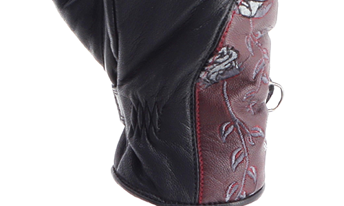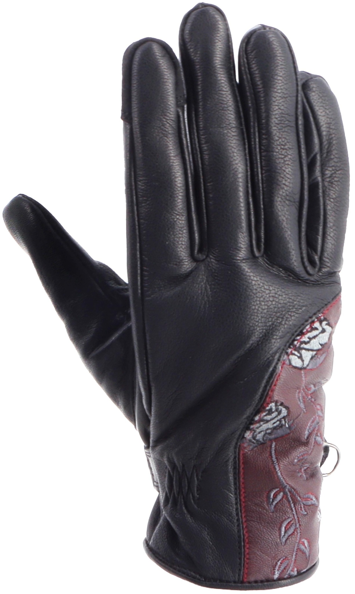 Женские летние чёрные кожаные мотоциклетные перчатки Helstons Flower с вышитыми розами.