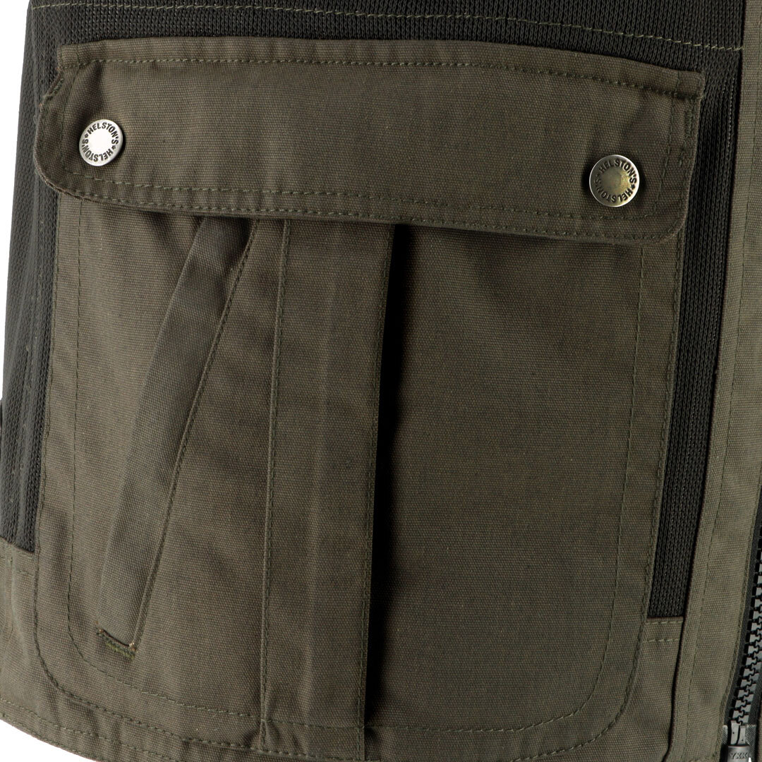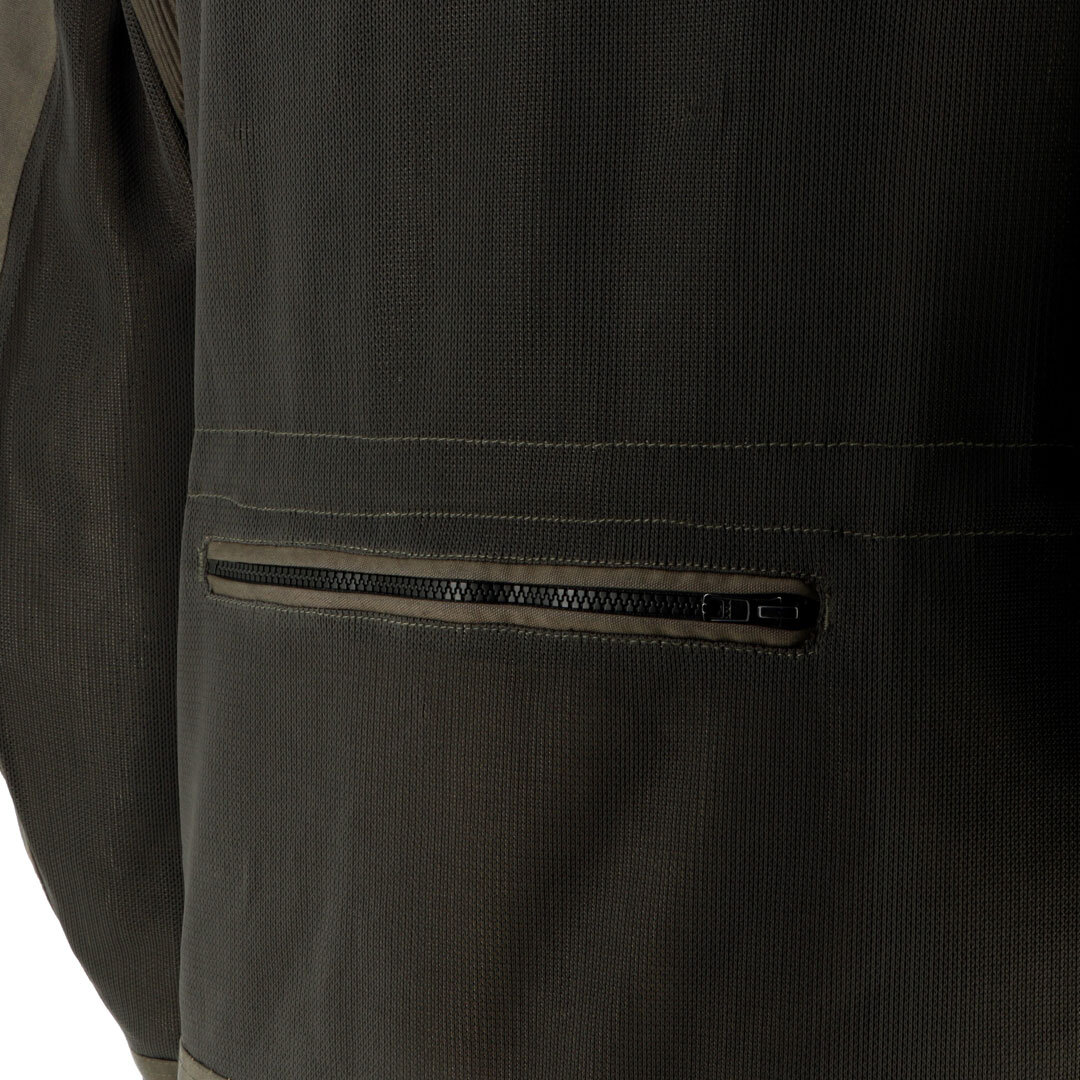 Изготовленная из прочного брезента и сетчатой ткани, она не только долговечна, но и обеспечивает оптимальную вентиляцию, сохраняя прохладу даже в теплую погоду. Вы можете отрегулировать ширину манжет с помощью кнопок, чтобы подогнать куртку по размеру, а многочисленные карманы — 2 спереди, 2 кармана на молнии спереди, 2 внутренних кармана на молнии и 1 карман сзади — предлагают достаточно места для хранения ваших личных вещей.