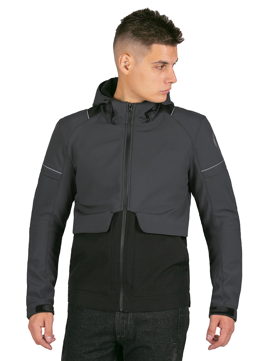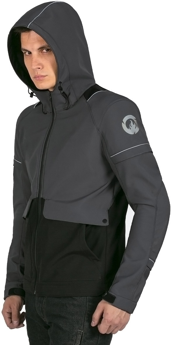 Центральная влагозащитная молния, манжеты с регулировкой ширины, 4 кармана (2 боковых прорезных для рук, 2 с клапаном на липучке и кнопке с влагозащитной молнией для телефона, документов) делают куртку максимально функциональной. Капюшон на утяжках и кнопке для пристёгивания к спинке предотвращает мешающие колебания на скорости. Световозвращающая отделка на рукавах, плечах и спине обеспечивает пассивную безопасность в тёмное время суток. Специальный мотоциклетный крой и удлинённая спинка гарантируют комфорт и защиту в движении.