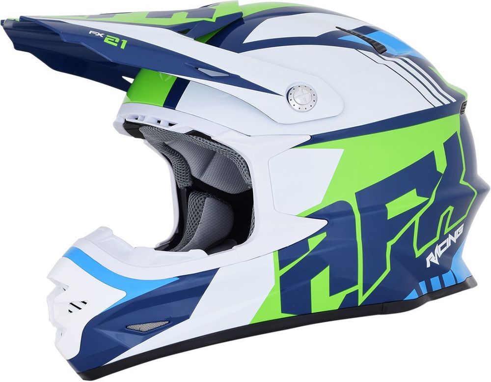 Мотошлем Кроссовый AFX FX-21 / Белый-синий-зеленый