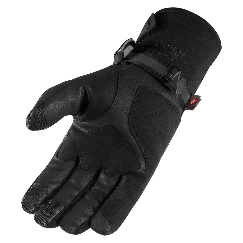 Мужские мотоперчатки Icon Raiden — утепленная влагостойкая модель, которая предназначена для холодного времени года. Внешний слой пошит из высокопрочной искусственной замши Axe и эластичного текстильного материала, плотно обхватывающего запястье. Внутри перчаток расположена подкладка-утеплитель PrimaLoft и водонепроницаемая мембрана Hipora, которые не допускают переохлаждения рук.