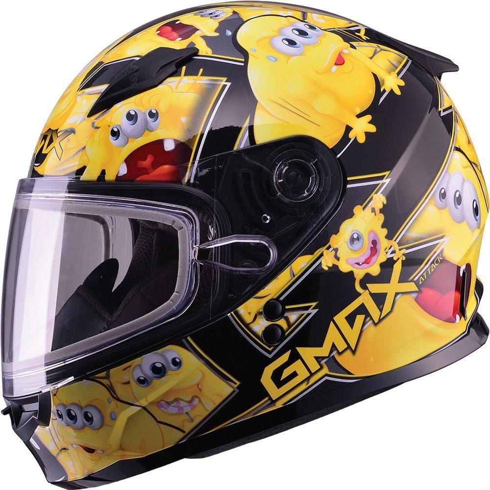 GMAX GM 49Y ATTACK — детский шлем для езды на снегоходе с прочным и легким корпусом из термопластика. Аэродинамическая форма уменьшает шум во время езды и распределяет нагрузку по всей поверхности. Пенополиуретановая отделка внутренней части снижает силу удара и защищает внешнюю оболочку. Текстильная влаговпитывающая подкладка легко снимается для стирки.