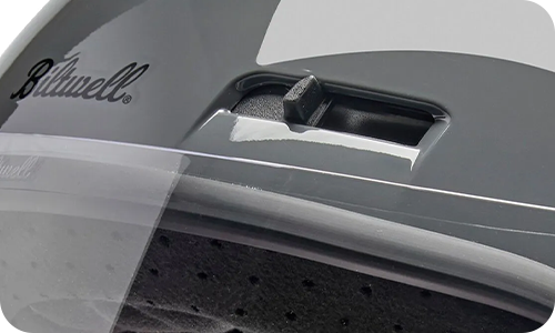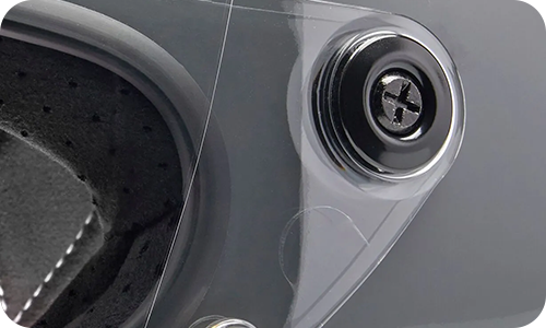 Прозрачный визор из литого поликарбоната соответствует стандарту CE, устойчив к царапинам и защищен от запотевания. Крепежный механизм визора позволяет фиксировать его в приоткрытом положении для увеличения притока прохладного воздуха при низкой скорости. Фурнитура из анодированного алюминия и нержавеющих стальных винтов позволяет индивидуально настраивать внешний вид. Вся внутренняя отделка, включая подкладку и щечные подушки, легко снимается и меняется. Материалы из флиса и лайкры с поролоновой основой хорошо впитывают и выводят влагу.