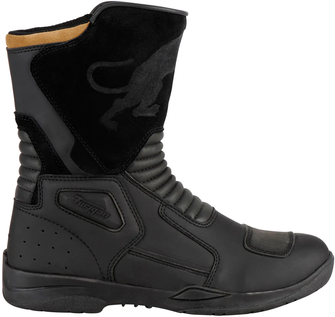 Конструкция продумана до мелочей. Усиления из высокопрочных материалов в критических зонах (пятка, голень, мысок) обеспечивают пассивную безопасность, а встроенные амортизаторы D3O® смягчают ударные нагрузки. Дополнительная накладка в зоне переключения передач увеличивает износостойкость, а перфорация в области пятки улучшает вентиляцию. Верх из синтетической микрофибры и полиэстра сочетает легкость, долговечность и стильный дизайн в черно-золотом исполнении. Надежную посадку и защиту от влаги обеспечивает система фиксации с язычком на липучке под внешним клапаном.