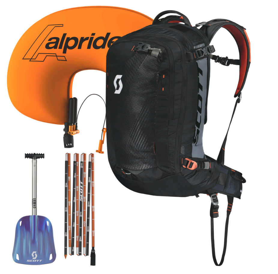 Лавинный рюкзак Guide AP 30 бренда Scott с баллоном аргона в комплекте создан для любителей экстремальной езды и фрирайда и профессионалов горнолыжного спорта. Габариты изделия составляют 60х28х22 см., а объёма в 30 литров вполне хватит для того, чтобы взять с собой всё необходимое на целый день. Рюкзак оснащён системой безопасности Alpride 2.0 с подушкой ярко-оранжевого цвета объёмом 150 литров и удобной рукояткой для активации. Подушка надувается за 3 секунды и помогает удержать райдера на поверхности в массе снега при сходе лавины. Вес изделия без снаряжения составляет 1560 г., вес системы безопасности — 1130 г.