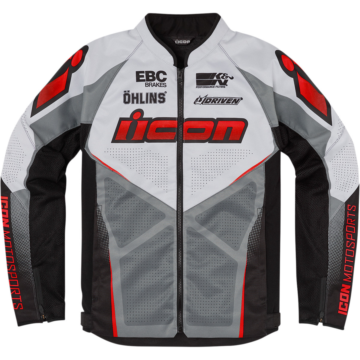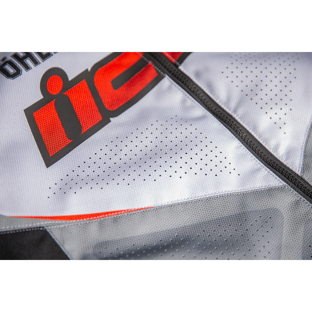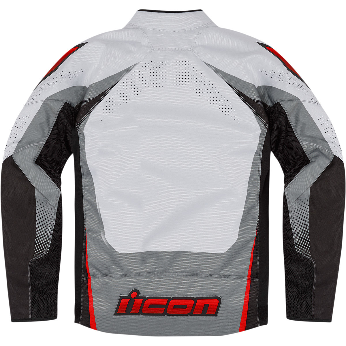 Серая текстильная мотокуртка Icon Hooligan Ultrabolt с красным логотипом производителя – новинка 2021 года. Сшита из полиэстера, армированного кевларом. Для комфорта в жаркую погоду имеет большую площадь перфорированных вставок. Застегивается на молнию, содержит минимум декоративных деталей, скроена в стиле sport-fit для комфортной посадки при любом стиле езды, включая агрессивный.