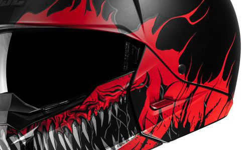 Внутри всё продумано до мелочей. Корпус из поликарбоната сделан по технологии CAD: он получился легким и сбалансированным, так что шея не затечет даже после целого дня в седле. Если носишь очки, этот модульный шлем тебе точно зайдет — внутри есть специальные канавки под дужки, ничего не давит и не мешает обзору. Подкладка Supercool с антибактериальным эффектом отлично отводит пот и «холодит» в жару, а если испачкается — просто сними и закинь в стирку. Черно-красная графика Scraw выглядит просто пушечно и подчеркивает характер твоего байка.