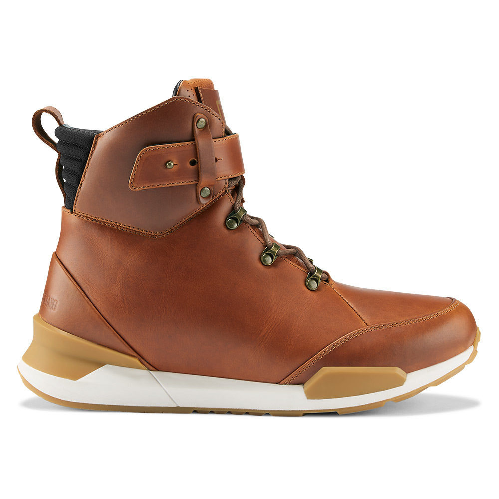 Мужские мотоботинки Icon 1000 Varial внешне практически не отличаются от повседневной обуви и являются стильной функциональной моделью. Ноги райдера полностью защищены от влаги, грязи, пыли и других неблагоприятных внешних факторов благодаря наружному слою из гибкой натуральной кожи, устойчивой к механическим повреждениям и преждевременному износу. В случае непредвиденной ситуации пластины из мягкого пеноматериала D3O геля становятся твердыми, помогая смягчить силу ударного воздействия и избежать серьезных травм голеностопного сустава. Надежная и удобная фиксация обуви на лодыжке достигается за счет регулируемого ремня на щиколотке и шнуровки, которая продевается через металлические петли.