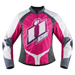 Мотокуртка Icon Overlord Sweet Dreams Jacket розового цвета сшита с учетом анатомических особенностей женской фигуры. Для основы изделия использован прочный текстиль с водоотталкивающей мембраной. Защитные протекторы плеч, локтей и спины выполнены из популярной в США инновационной ткани d3o, способной приобретать жесткость и упругость при возникновении нагрузки.