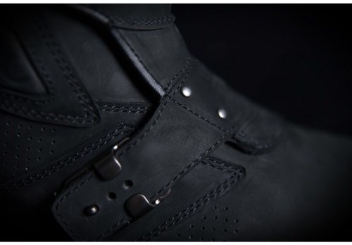 Мужские мотоботинки Icon Retrograde 1000 Boots сшиты из черной кожи великолепного качества и украшены металлическим шильдом с логотипом бренда, который одновременно служит для защиты голени спереди. Для удобства предусмотрены 2 застежки — задняя на молнию и передний клапан с «липучкой» и кабурной кнопкой.