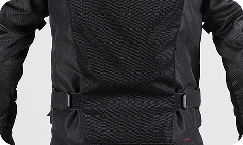 Ключевым нововведением является применение инновационной водоотталкивающей сетчатой ткани WATERPROOF MESH с покрытием, снижающим поверхностное натяжение. Такая технология позволяет куртке некоторое время противостоять лёгким осадкам, давая мотоциклисту возможность успеть укрыться от дождя или надеть дополнительную защиту от влаги. Конструкция из прочного, но лёгкого полиэстера обеспечивает максимальную вентиляцию, создавая комфортные условия для поездок в жаркую погоду.
