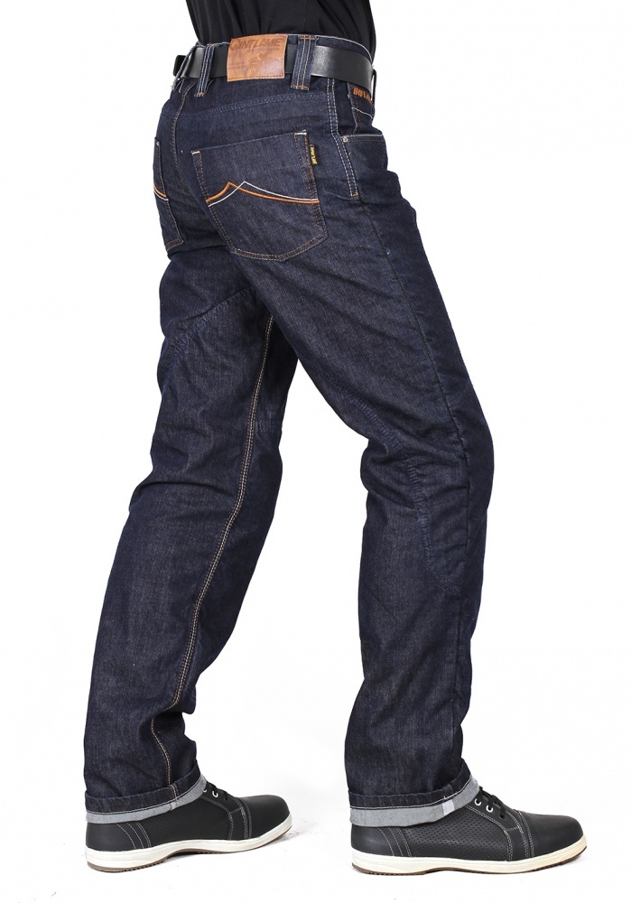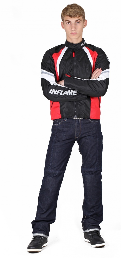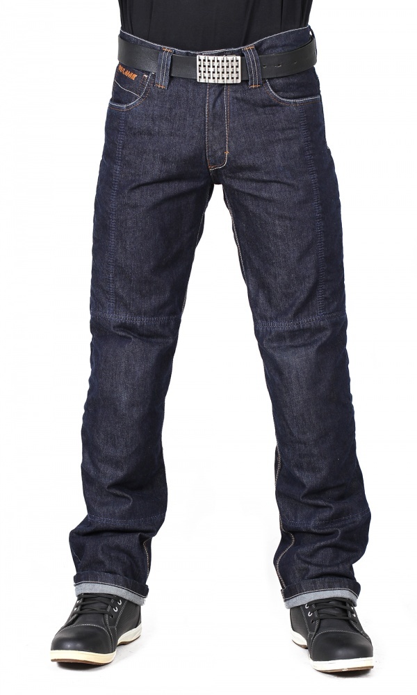 Мужские джинсы Inflame J102 являются элементом мотоэкипировки, поэтому обеспечивают защиту от ударов и падений, а также обладают высокой износоустойчивостью. Внешне модель не отличается от брюк для повседневного ношения. При производстве использовался высокопрочный хлопковый материал темно-синего цвета. Все швы изделия имеют усиление для предельной защиты от разрыва. В областях, которые подвергаются наибольшей нагрузке, присутствуют вставки из арамида.