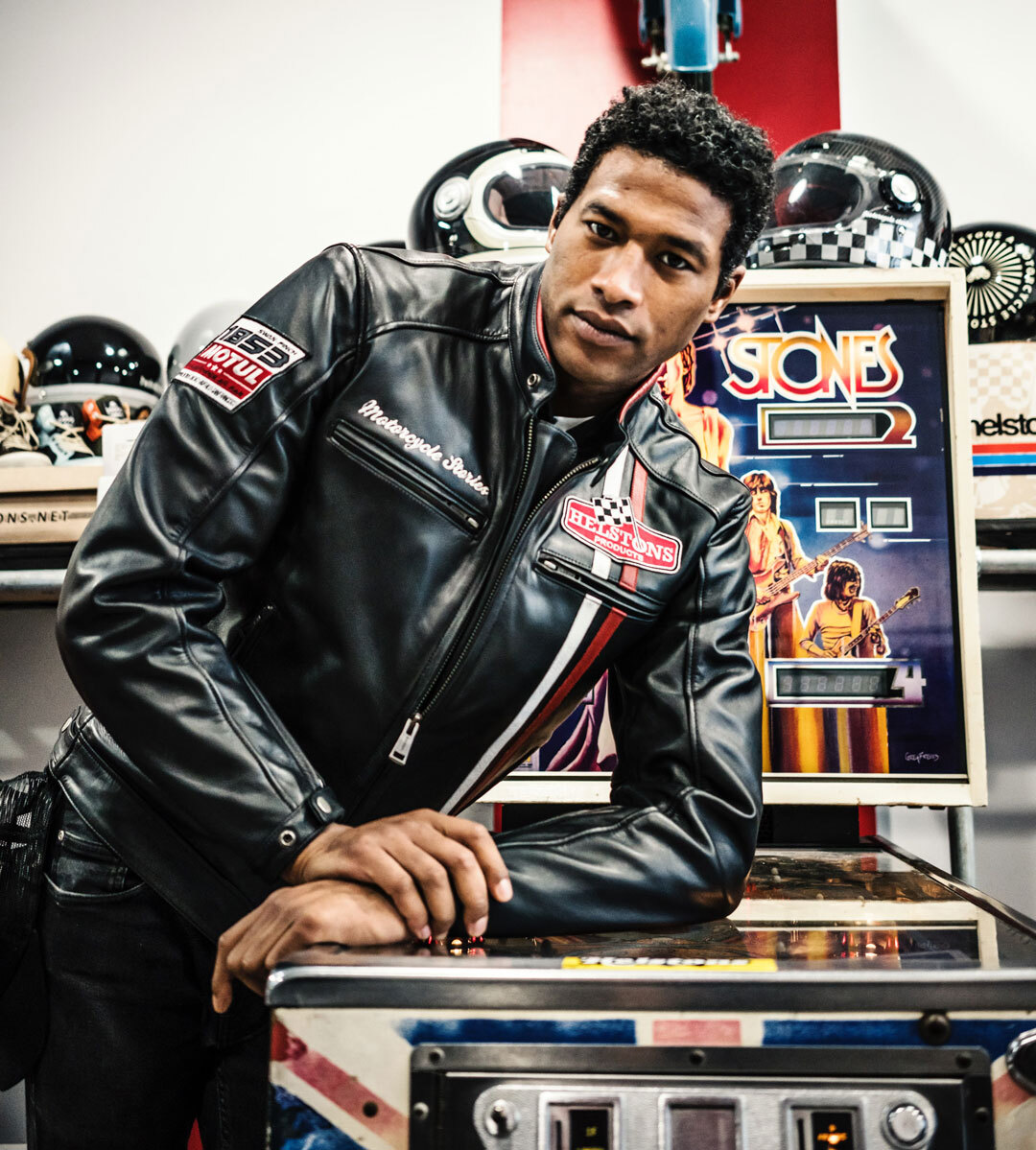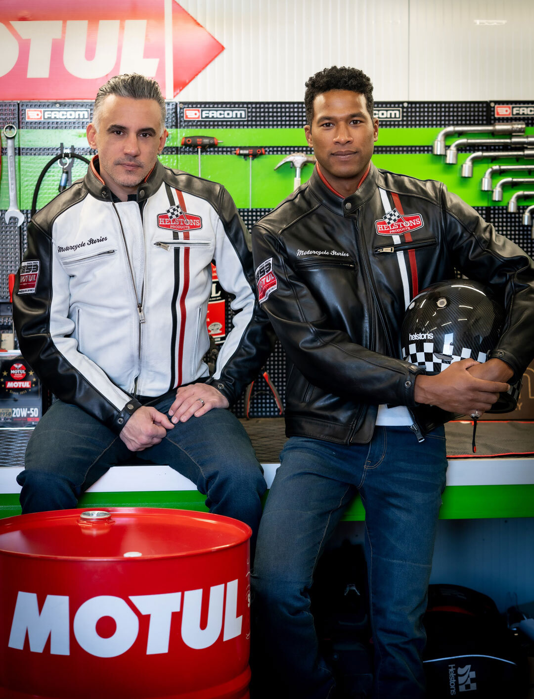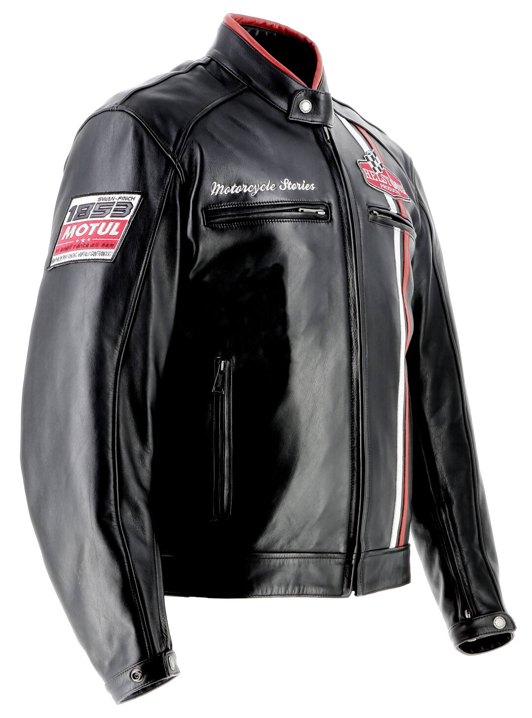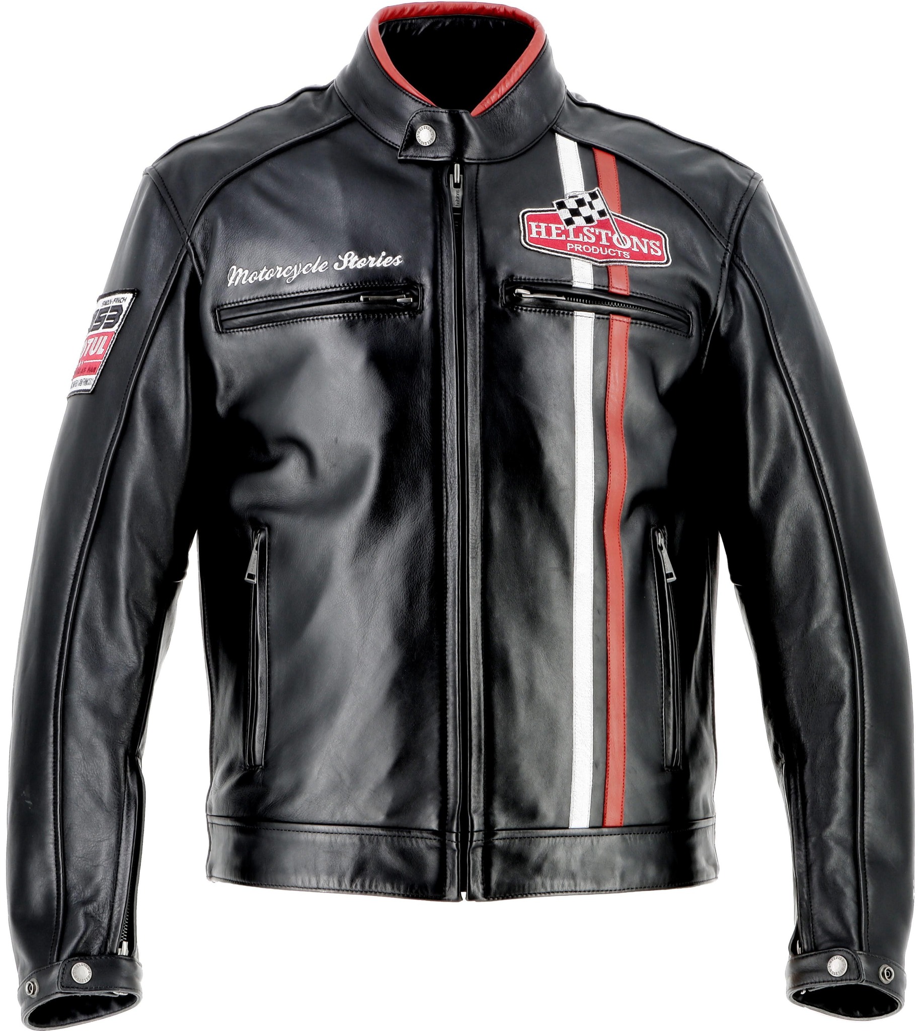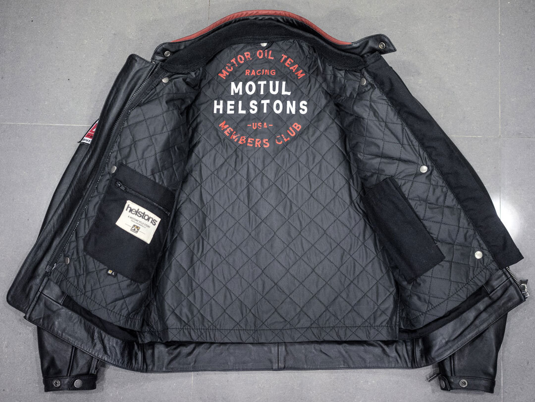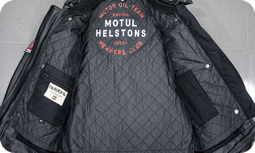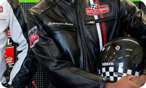 Вышитая нашивка Helstons и вышивка Motorcycle Stories на груди
