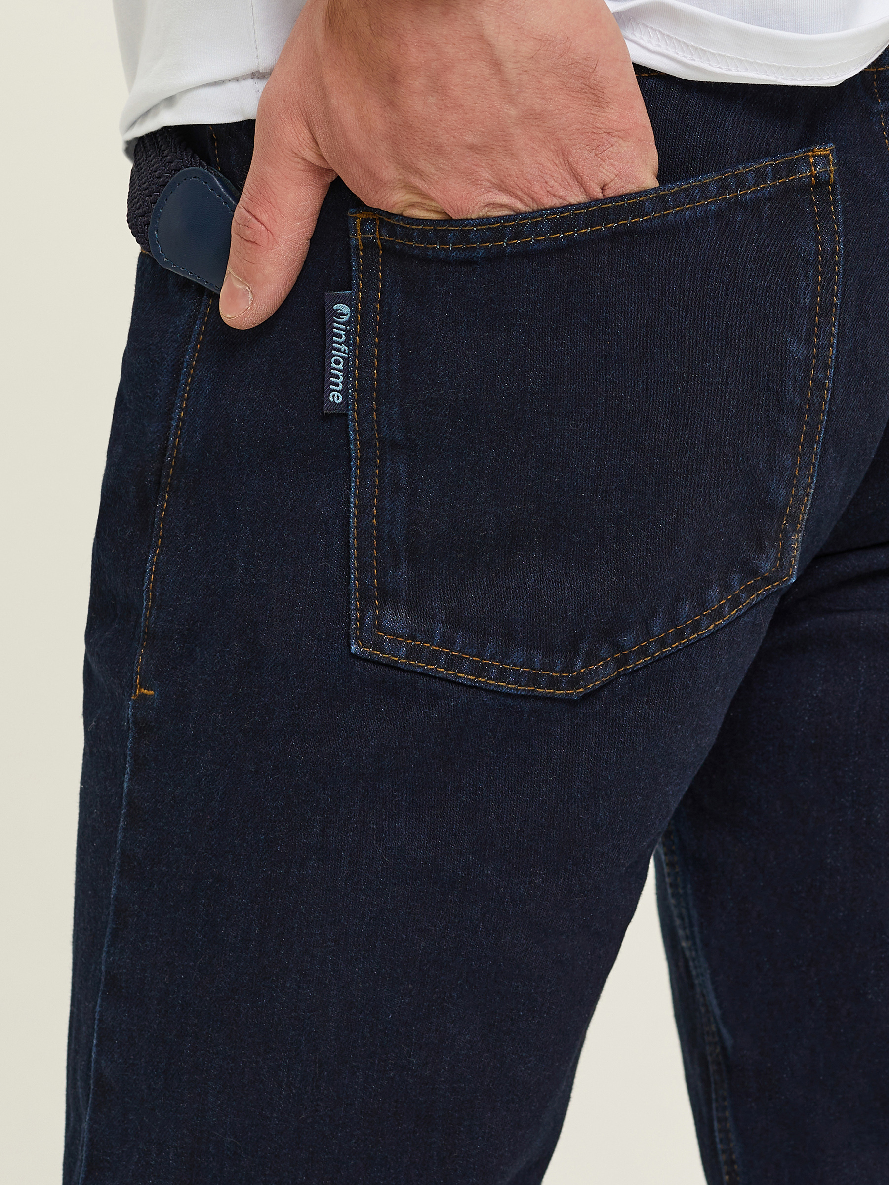 Мотоджинсы Inflame JC101 / Удлиненные — это премиальная модель для мужчин, которые ценят комфорт, надежность и стиль в каждой поездке. Эти мужские мотоджинсы в благородном темно-синем цвете выполнены из 100% натурального хлопка — оригинального итальянского денима плотностью 13 унций, что гарантирует прочность, долговечность и приятные тактильные ощущения.