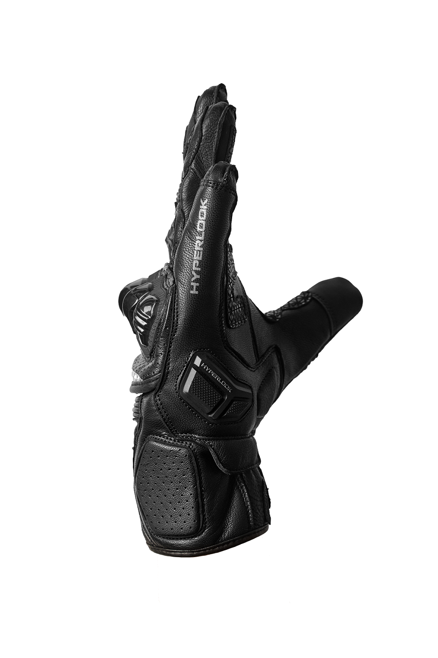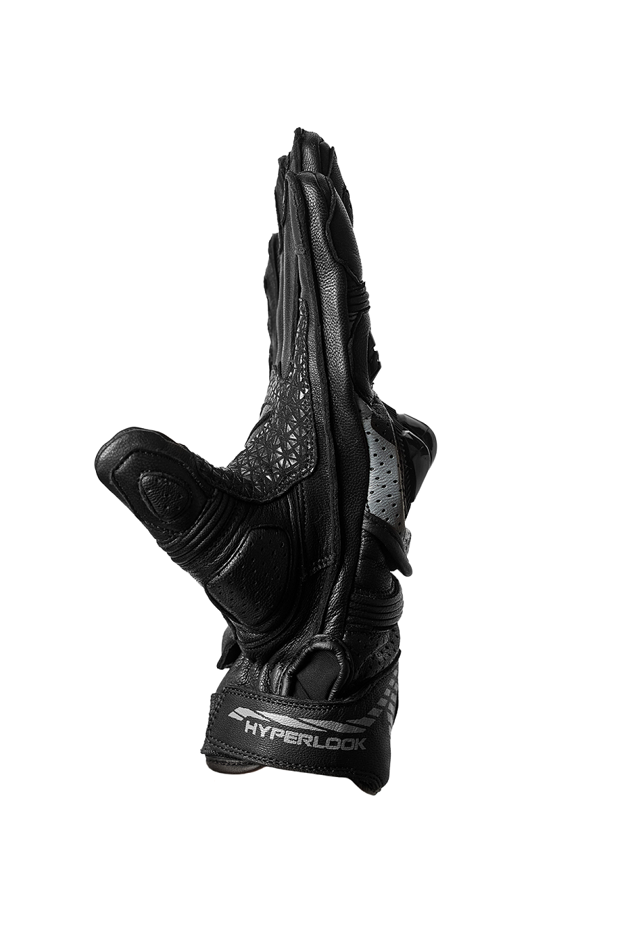 Hyperlook Jedi оснащены несколькими видами защиты для повышения безопасности. В области ладони размещен амортизирующий элемент из карбонового композита, обеспечивающий дополнительное поглощение ударов. На зоне костяшек установлены прочные полиуретановые вставки, минимизирующие риск травмирования при падении. Легкий вес и анатомическая форма обеспечивают свободу движений и точный контроль над мотоциклом, сохраняя естественную подвижность кисти.