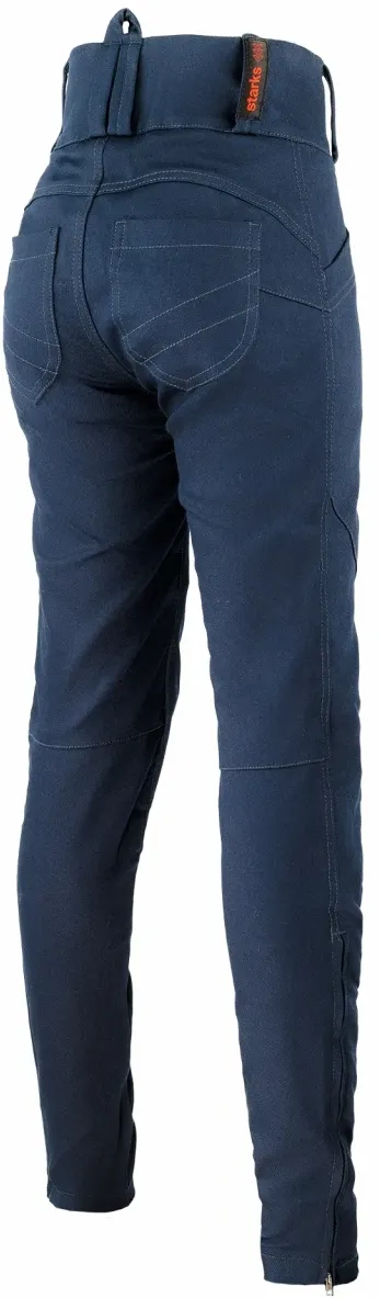 Ключевая особенность — интегрированная защита Level 2. Она тонкая, гибкая и вентилируемая, не сковывает движения, но обеспечивает надежную безопасность коленей и бедер. Длинная молния до колена упрощает процесс одевания и обеспечивает дополнительную вентиляцию в жаркую погоду. Скрытые боковые карманы сохраняют чистый силуэт, а высокая спина с центральной застежкой создает элегантный обтягивающий крой с эффектом пуш-ап. Эти джинсы для мотоцикла сочетают в себе технологии и женственный дизайн.