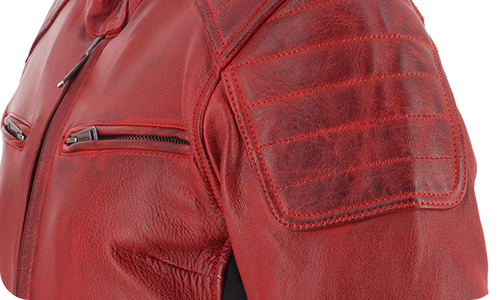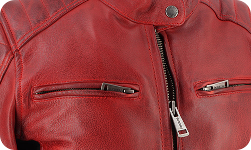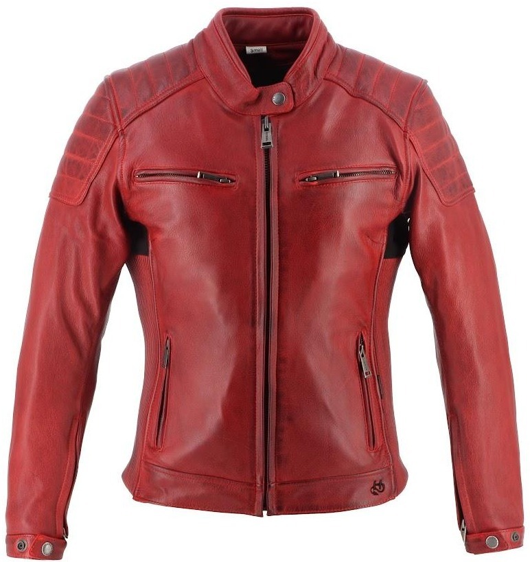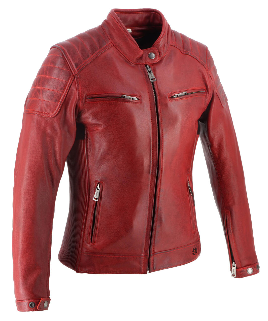 Мягкая кожаная куртка Helstons Jody красного цвета, сертифицированная CE класса A, гарантирует безопасность во время поездок.