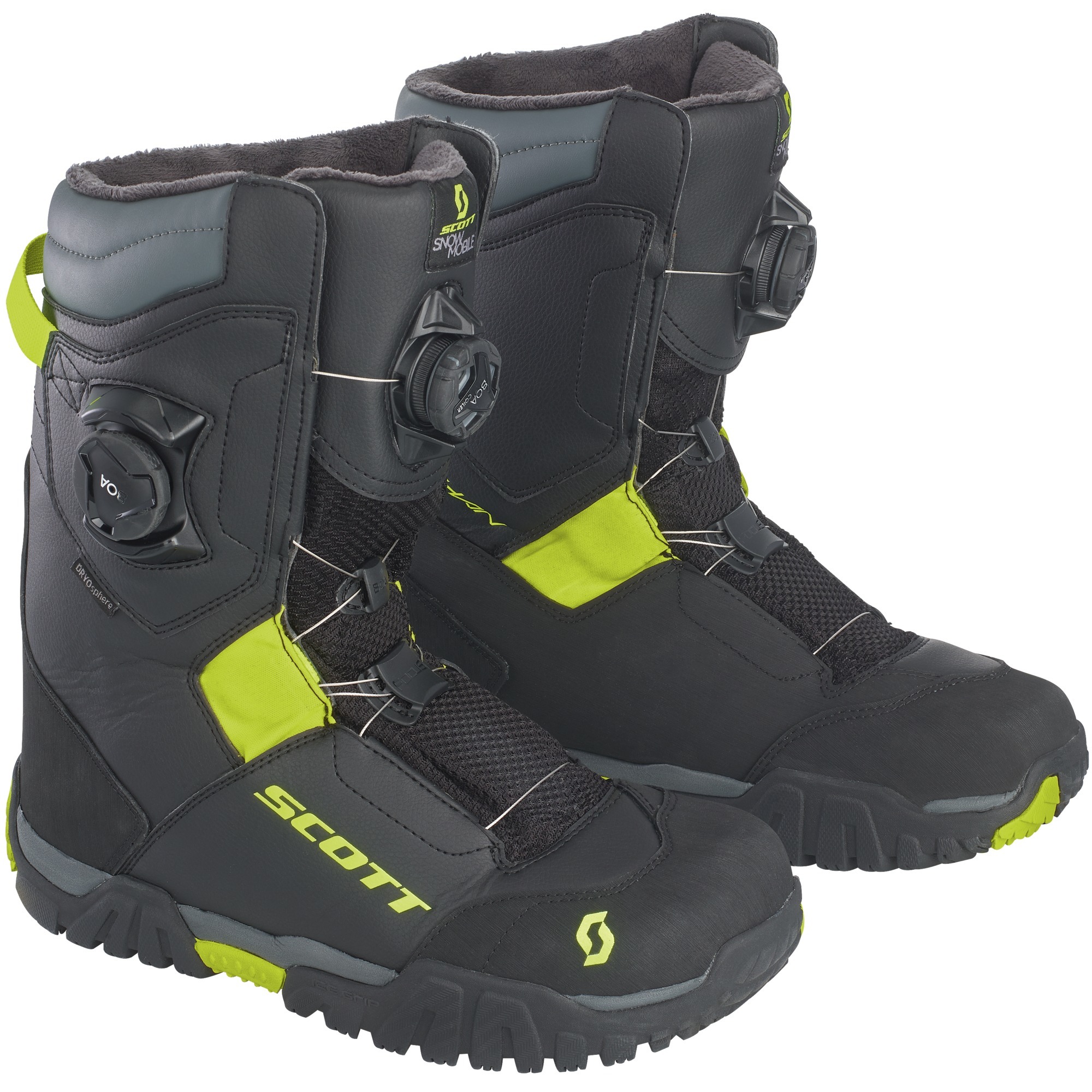Новые снегоходные ботинки премиум-класса Scott Kulshan выполнены в чёрном цвете с жёлтыми элементами. Модель спроектирована специально для райдеров, которые не отказывают себе в поездках даже в сильный мороз. Сапоги обеспечивают надёжную защиту и адаптируются по ноге. Их удобно надевать и снимать благодаря специальной системе шнуровки Dual Zone BOA Fit System. Водонепроницаемая и дышащая мембрана DRYOsphere сохранит ваши ноги сухими, в то время как подкладка с утеплителем 600 г. удержит тепло при температуре до -40 градусов.