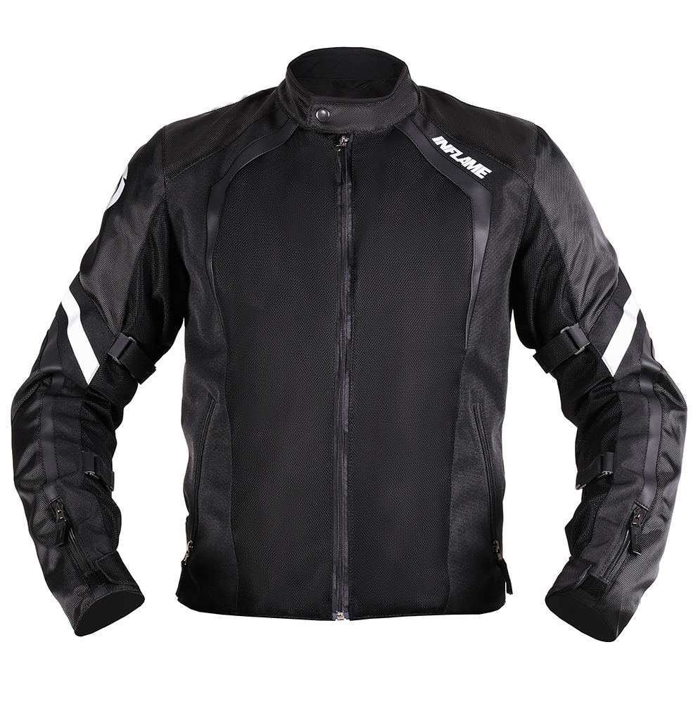 Мужская текстильная летняя мотокуртка Inflame Inferno II Dark черного цвета со стильными кожаными деталями и максимально адаптированным для мотоспорта кроем. В случае дождя оставляет запас времени для поиска укрытия или надевания дождевика. Куртка сшита из прочной ткани Waterproof Mesh, оснащена влагозащищенным внутренним карманом. Материал обладает нулевым поверхностным натяжением и водоотталкивающими свойствами.