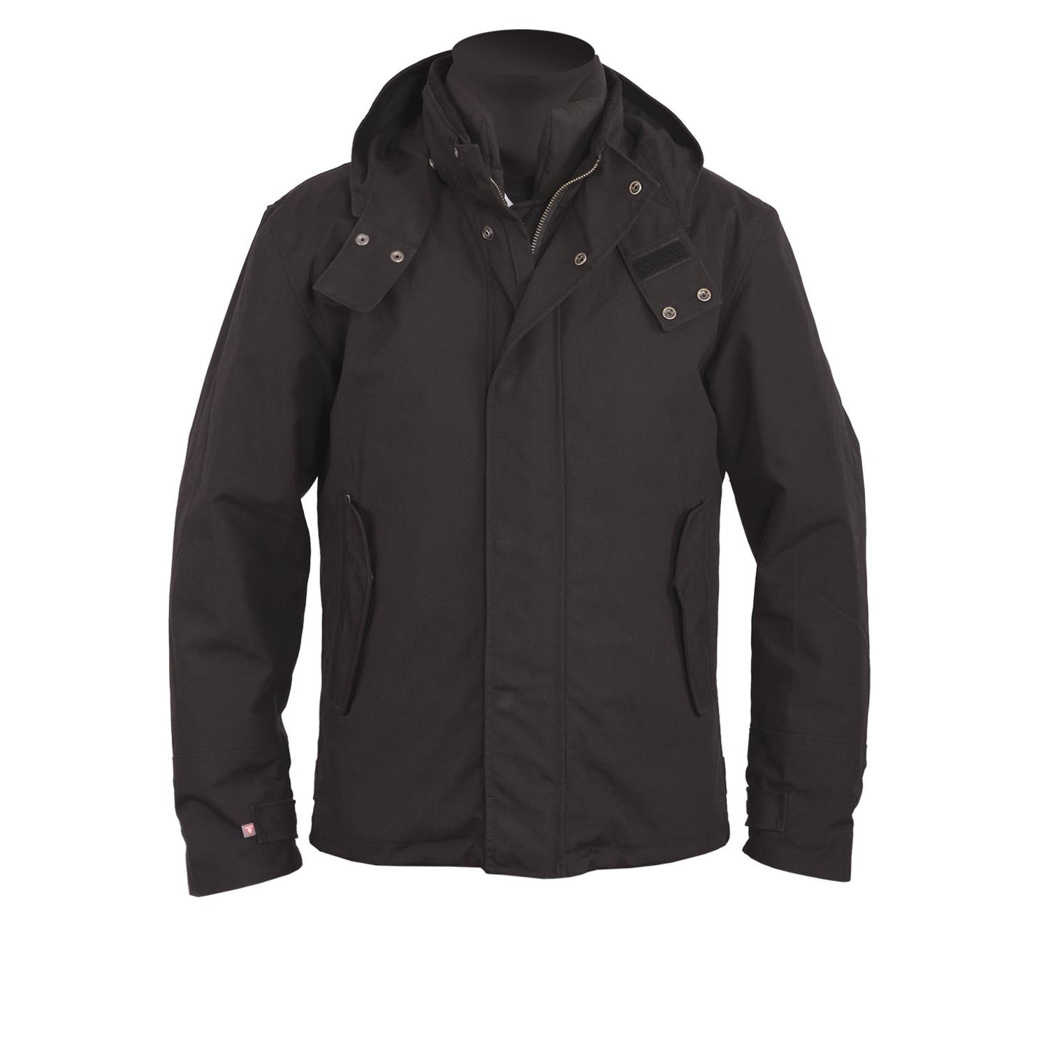 Куртка имеет съемный капюшон и два боковых кармана. Ширина рукавов на запястье регулируется с помощью липучки. Съемные протекторы плеч, локтей и спины уменьшают риск получения травм при падении с байка. Также в комплект входит съемный утепленный жилет с двумя карманами — под бумажник и мобильный телефон.