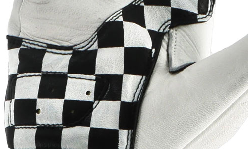 Ладонь украшена шахматным узором, отсылающим к винтажному гоночному духу бренда.