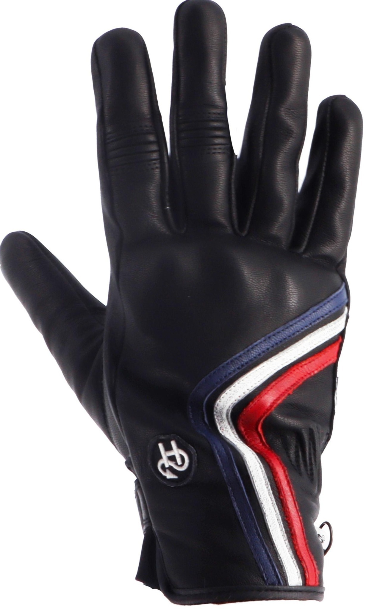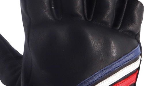 Выразите свою индивидуальность с помощью черных кожаных перчаток Helstons Freedom Line с синими, белыми и красными полосками, с оболочкой, специально разработанных для лета.