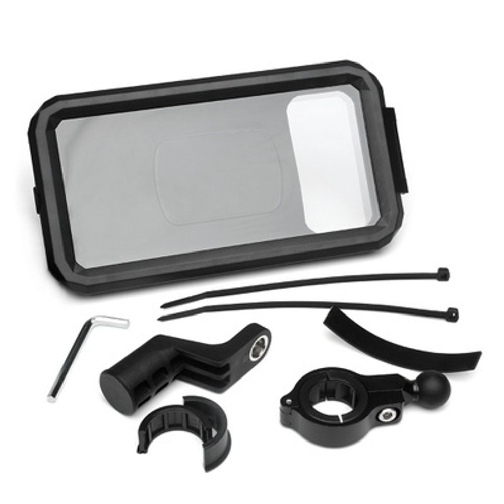 Аксессуар универсален – совместим с рулями диаметром 22–32 мм и любым гаджетом длино до 167 мм. Легко собирается и прикручивается без специальных инструментов и дополнительных креплений. Свободно регулируется поворотом вокруг оси руля на 360 °, позволяя быстро менять угол обзора. Продуманная конструкция не ограничивает движений руля, не закрывает датчики и световые индикаторы. Прорезиненные вкладки внутри чехла обеспечивают надежную фиксацию гаджета в условиях бездорожья.
