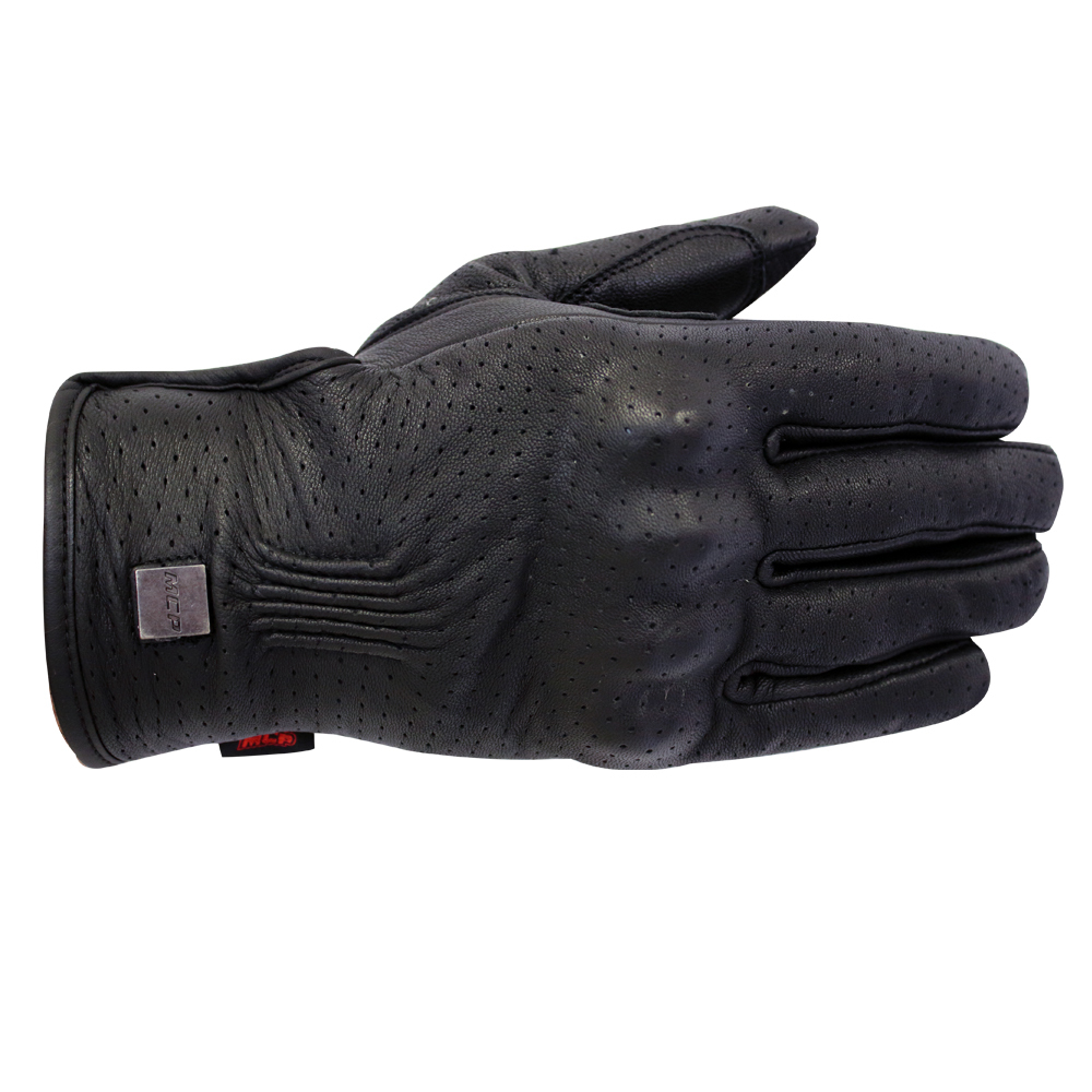 Классические мужские кожаные мотоперчатки Hound MCP из толстой черной воловьей кожи. Жесткий протектор защиты кулака закрыт кожаной накладкой. Для защиты ладони используется усиленная кожаная накладка, состоящая из нескольких элементов. Кожа верха перфорирована для наилучшей вентиляции в теплое время года. Для комфортной посадки по руке перчатка слегка присборена с наружной стороны запястья.