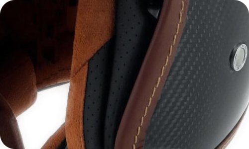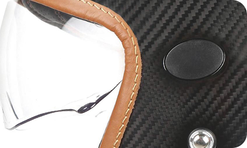 Обтекаемая форма с удобным козырьком защищает лицо от ветра и пыли. Уникальный дизайн включает эффектные заклёпки на затылочной части, куда удобно крепить очки.