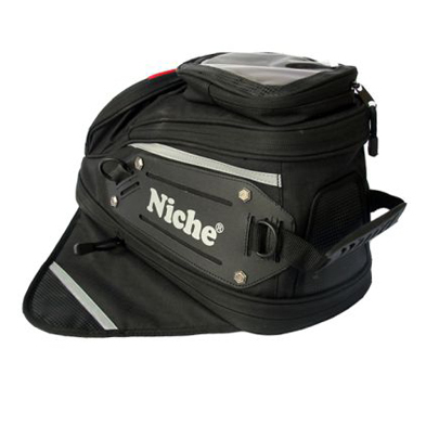 Сумка Niche NMO-2216 крепится на бак мотоцикла и предназначена для перевозки личных вещей, электроники и документов. Изделие производится из высокопрочного полиэстера плотностью 600D. Материал устойчив к износу и имеет влагоотталкивающие свойства. В комплект также включен чехол ярко-зеленого цвета, защищающий сумку от дождя. Основание модели отделано антискользящим материалом, предотвращающим образование царапин и потертостей на баке.