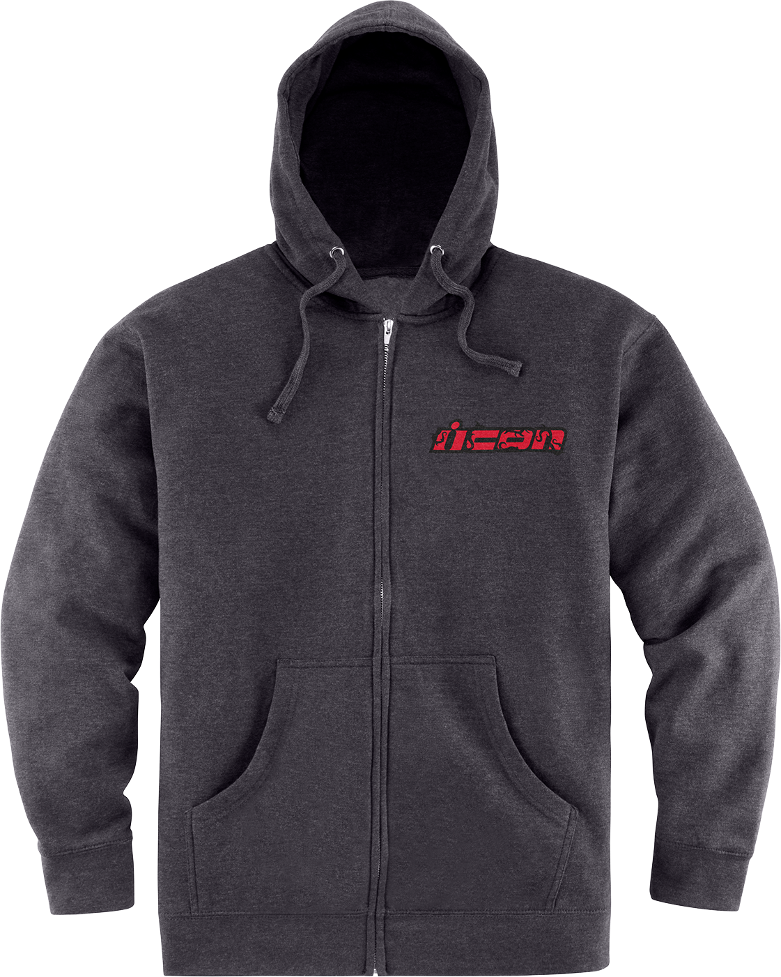 Мотоциклетная толстовка Icon Omnicrux Zip Fleece Hoodie пошита в классическом стиле из плотной практичной ткани (75% хлопок, 25% полиэстер). Она имеет центральную молнию по всей длине, эргономичный капюшон на шнурках и два кармана-кенгуру спереди по бокам. Надпись с логотипом бренда на груди и тематическая поп-арт графика на спине выполнены по технологии термотрафаретной печати.