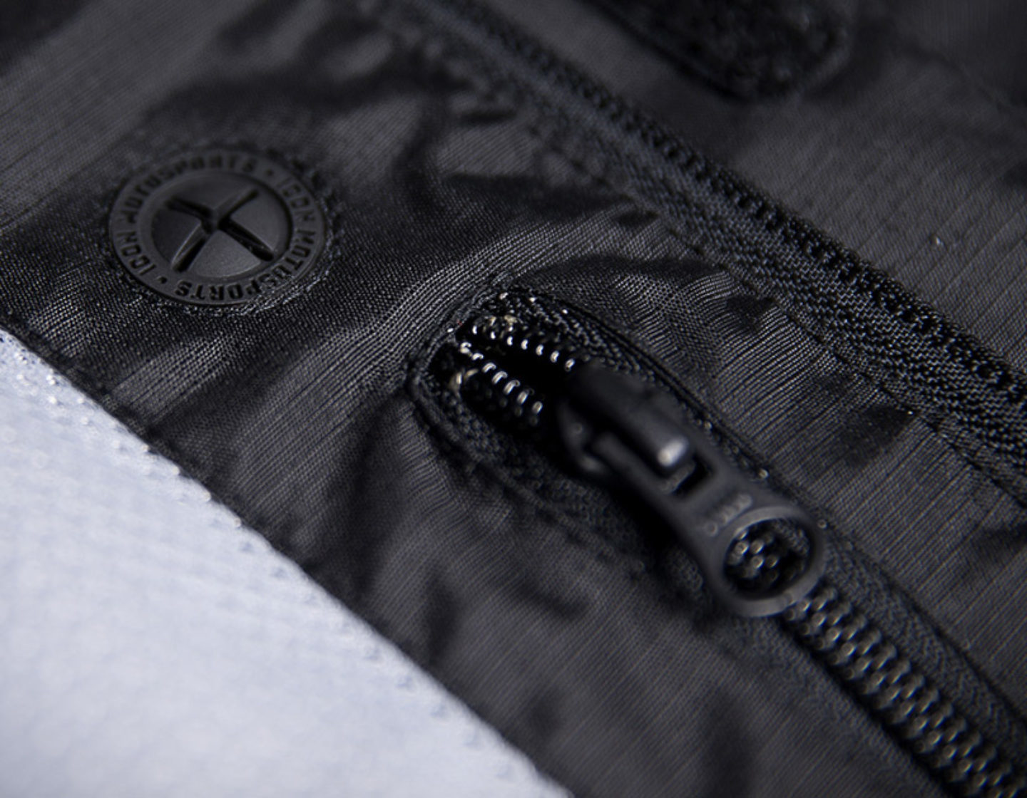 Уникальная форма куртки позволяет носить ее сверху обычной мотоэкипировки, обеспечивая дополнительный слой защиты и комфорта.