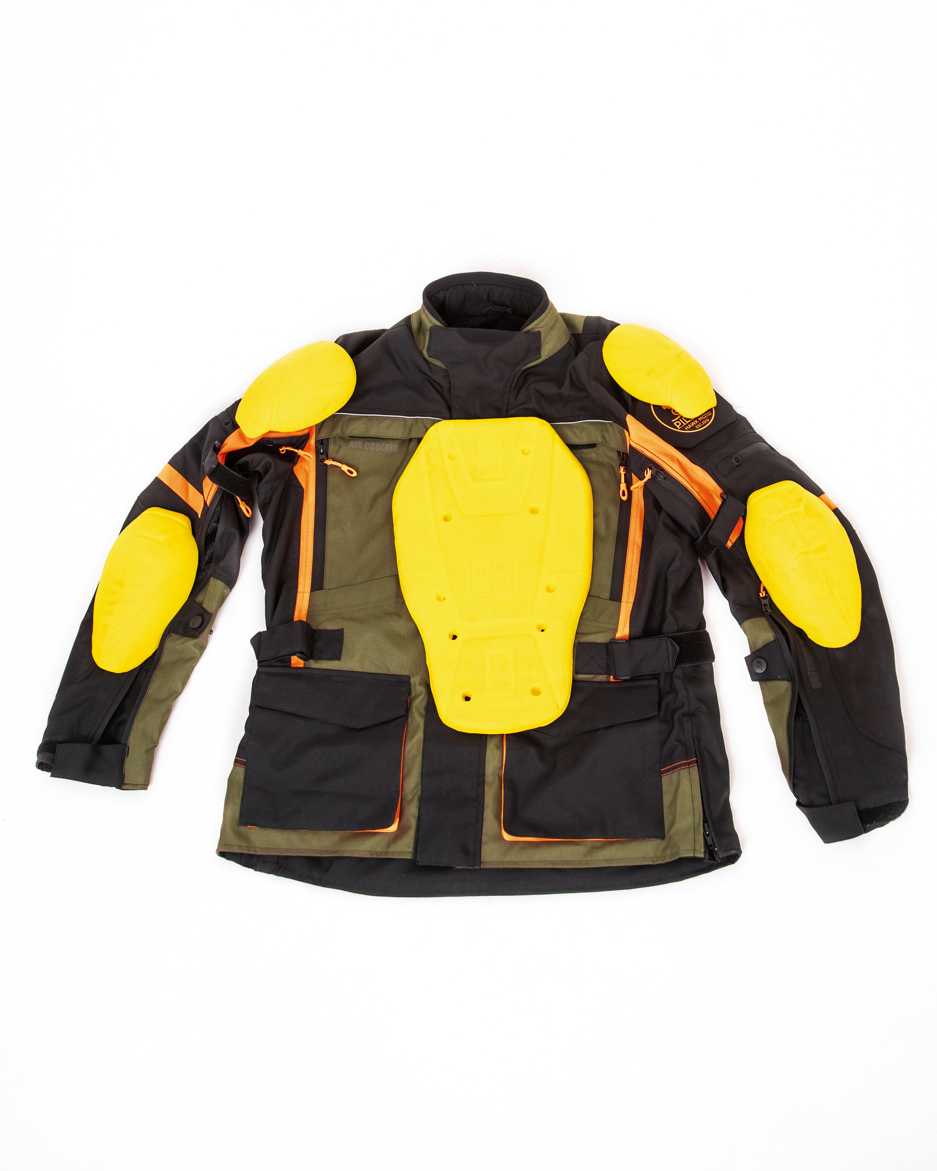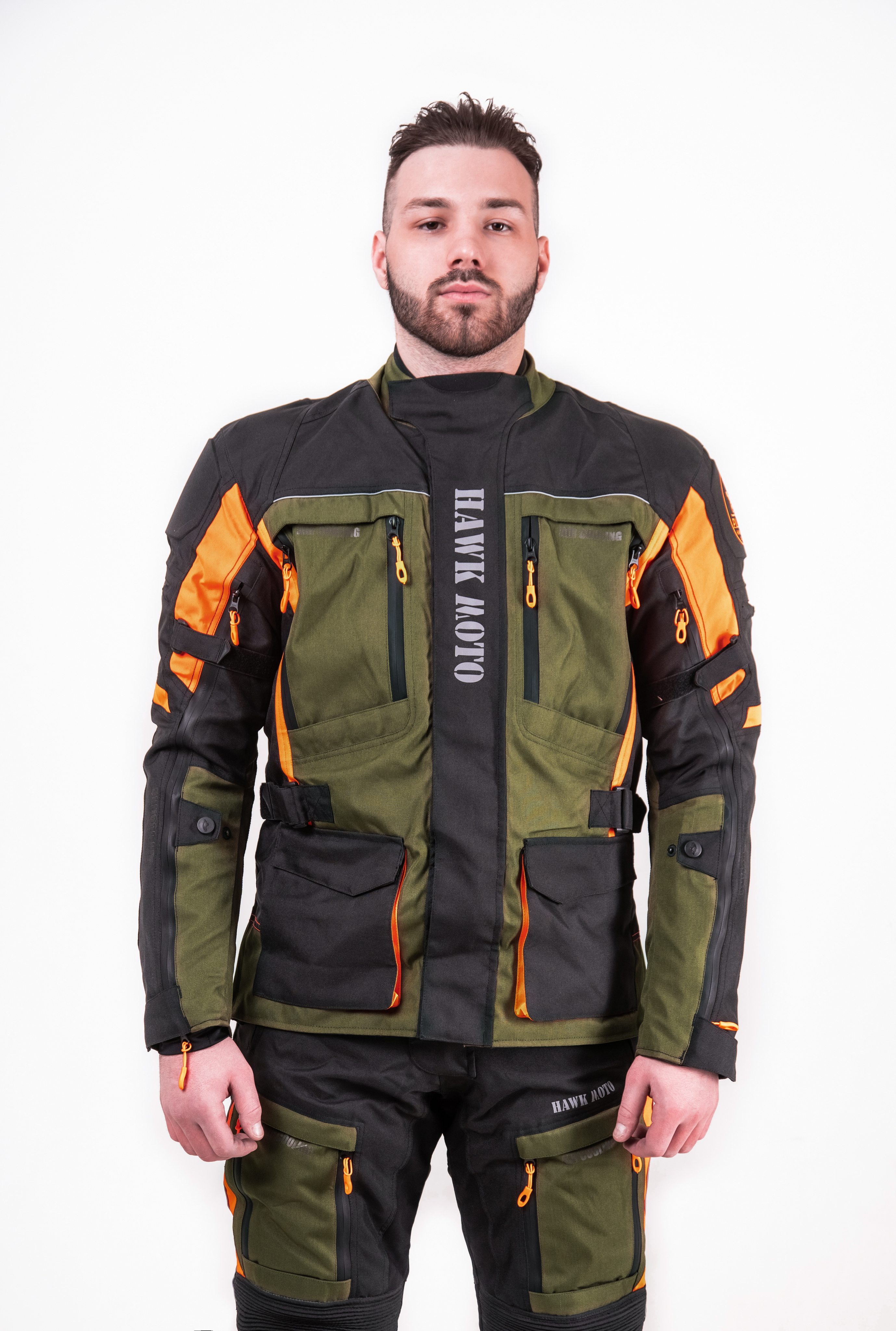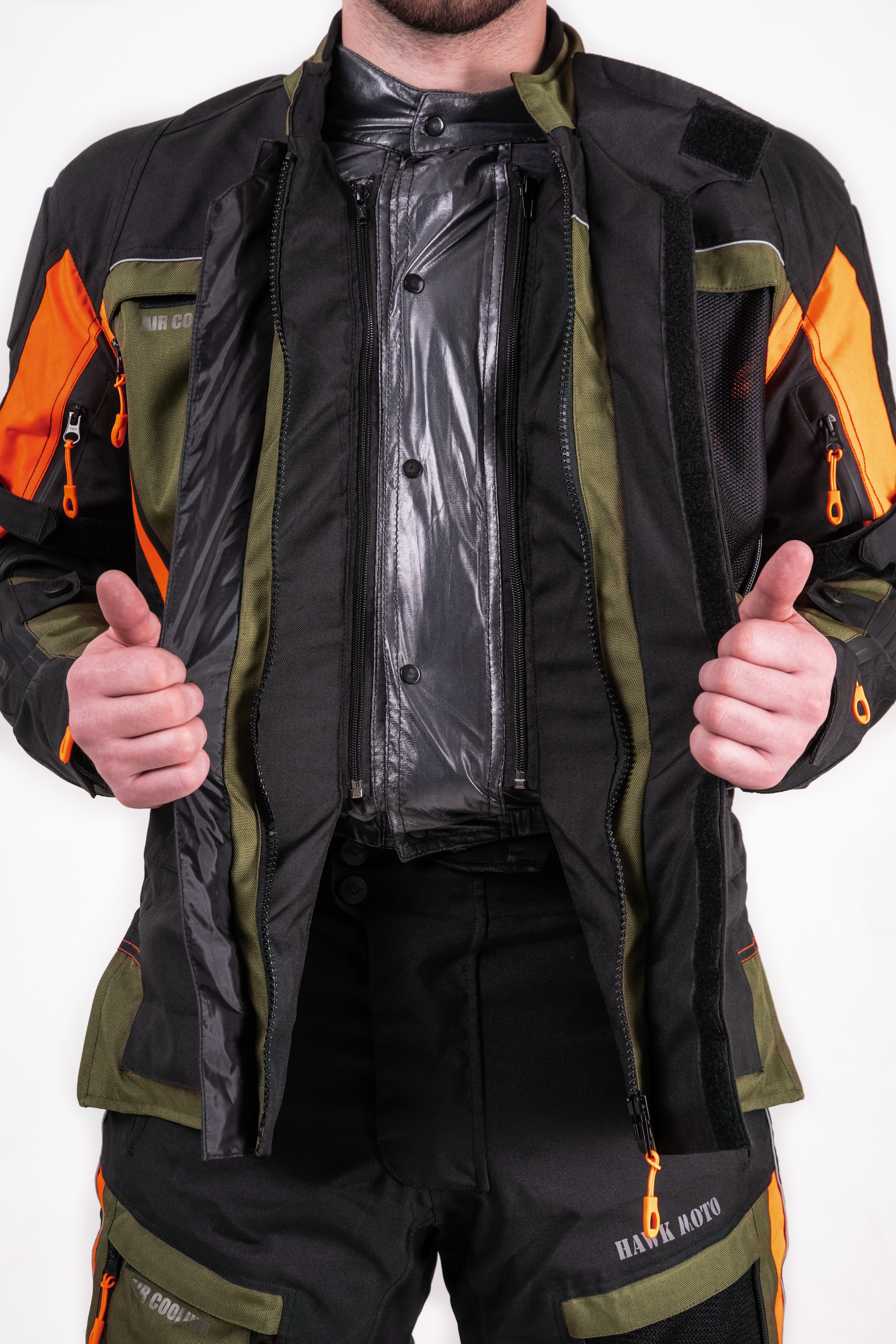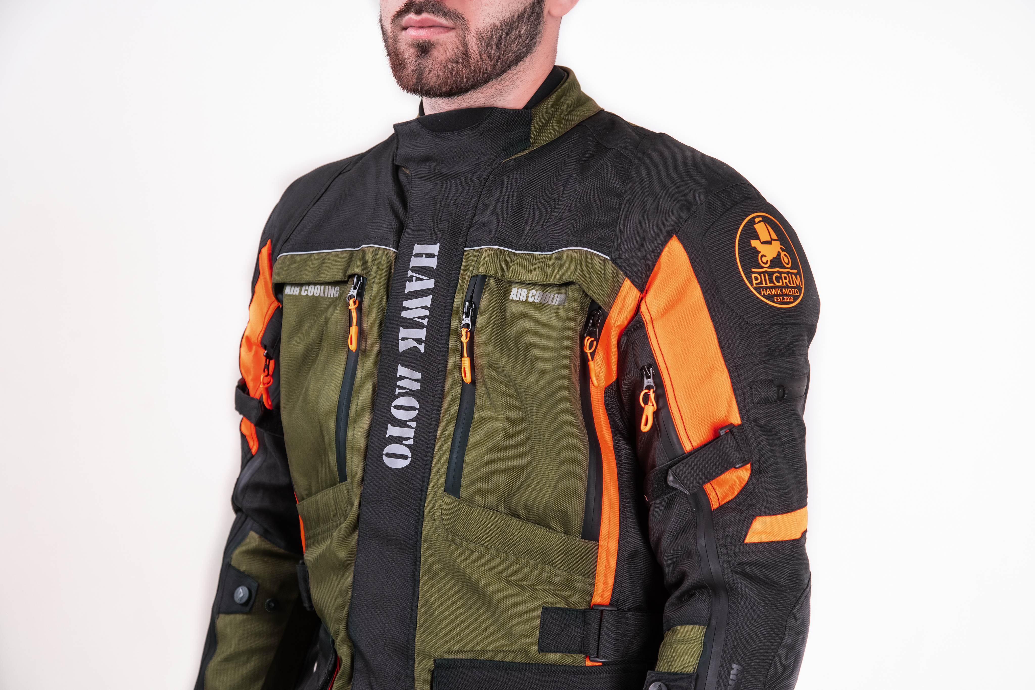 Мотокостюм Hawk moto Pilgrim — это идеальный комплект мотоэкипировки, разработанный специально для мотоциклистов, которые ценят комфорт и безопасность в длительных туристических поездках, независимо от погодных условий. Этот мотокостюм текстильный в стильном черно-зеленом цвете с оранжевыми вставками не только эффективно защищает от дождя, тумана, жары и сильного ветра, но и обеспечивает высокую заметность на дороге.