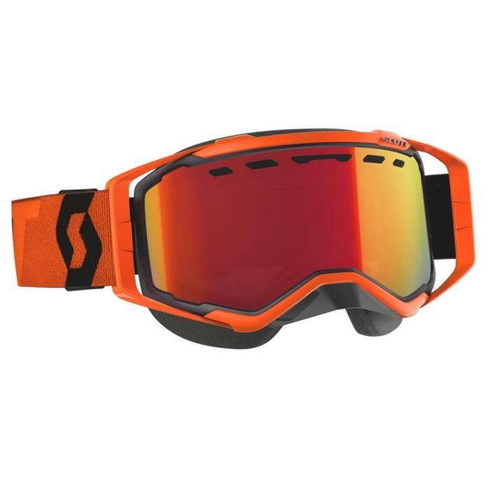 Кроссовые очки Prospect Snow Cross сочетают все новые технологии компании Scott и привлекают спортивным дизайном. Двойное красное хромированное стекло OptiView из поликарбоната оправлено в оранжево-черную рамку с широким оранжевым ремнем, который надежно фиксирует очки на шлеме. Цилиндрическая форма линзы позволяет замечать все происходящее на дороге. Светопропускание в 46% хорошо отражает блики, защищает от UV-излучения, повышает контраст теней и предметов.