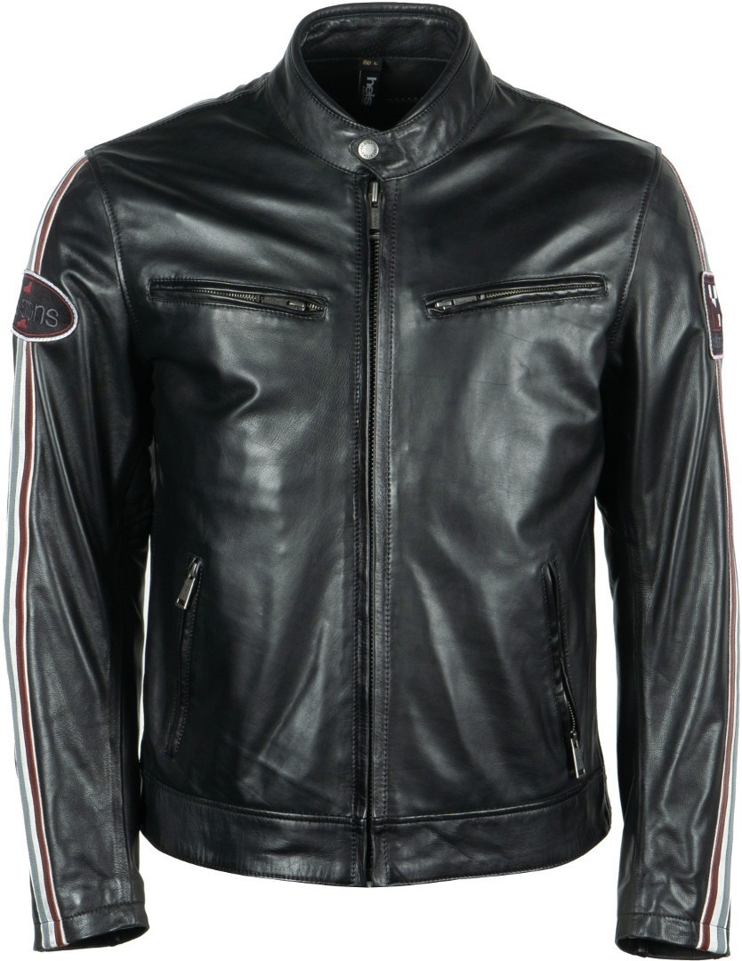 Мужская кожаная всесезонная мотокуртка Helstons Race Cuir Aniline. Вдохновением при ее разработке дизайнерам явно послужила культовая мотоциклетная куртка Ace в винтажном стиле. Модель сшита из очень эластичной мягкой воловьей кожи толщиной 0,9-1,1 мм с анилиновым крашением, на ощупь приятная и теплая. Модель имеет прямой крой, комфортную посадку по фигуре и отделку цветными полосками из белой, бордовой и серой кожи на рукавах.