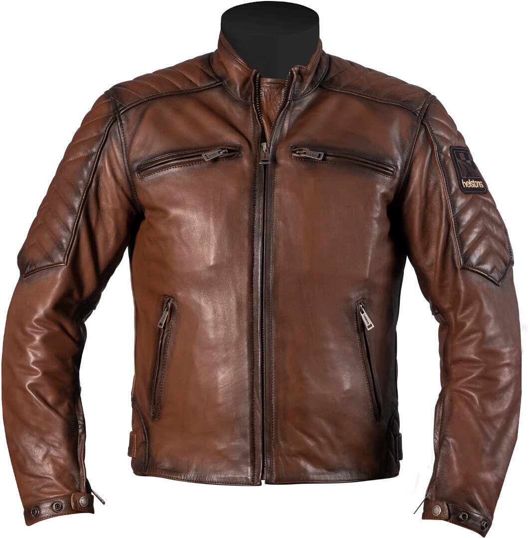 Мужская кожаная всесезонная мотокуртка Helstons Raft Cuir Rag коричневого цвета. Сшита в винтажном стиле из износостойкой кожи буйвола толщиной 1,1–1,2 мм с дышащей влагозащитной мембраной. Кожа невероятно прочная, с гладкой, слегка вощеной поверхностью, очень приятной на ощупь. Подкладка сшита из износостойкого огнеупорного хлопка, имеет 2 кармана на молнии.