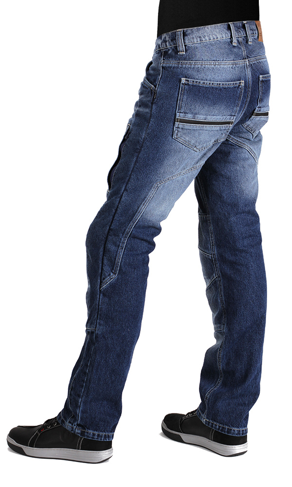 Мужские текстильные летние мотоджинсы Inflame Rage синего цвета универсального кроя. Изготовлены из плотного износостойкого денима, усиленного в местах максимальной нагрузки арамидными нитями (аналог кевлара). Модель плотно облегает тело без сдавливания. Ширина штанин исключает случайный зацеп за элементы мотоцикла.