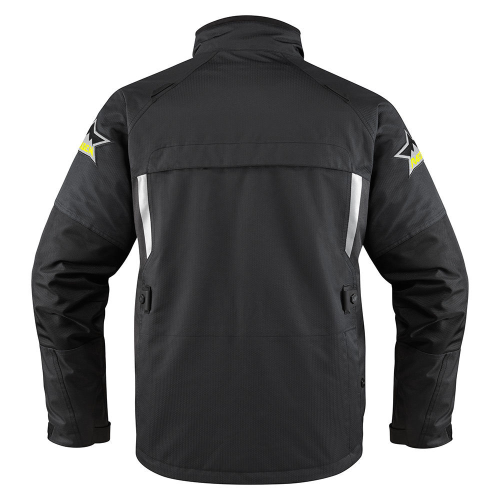 Мотокуртка Icon Raiden DKR Monochromatic обладает высокими гидроизоляционными и вентиляционными свойствами. Сверхпрочная основа изготовлена из сотовидного текстильного материала Honeycomb, покрытого ламинированной мембраной Hycor. Протекторы на спине, локтях и плечах выполнены из двойной биогубки D3O, эффективно абсорбирующей ударные нагрузки.