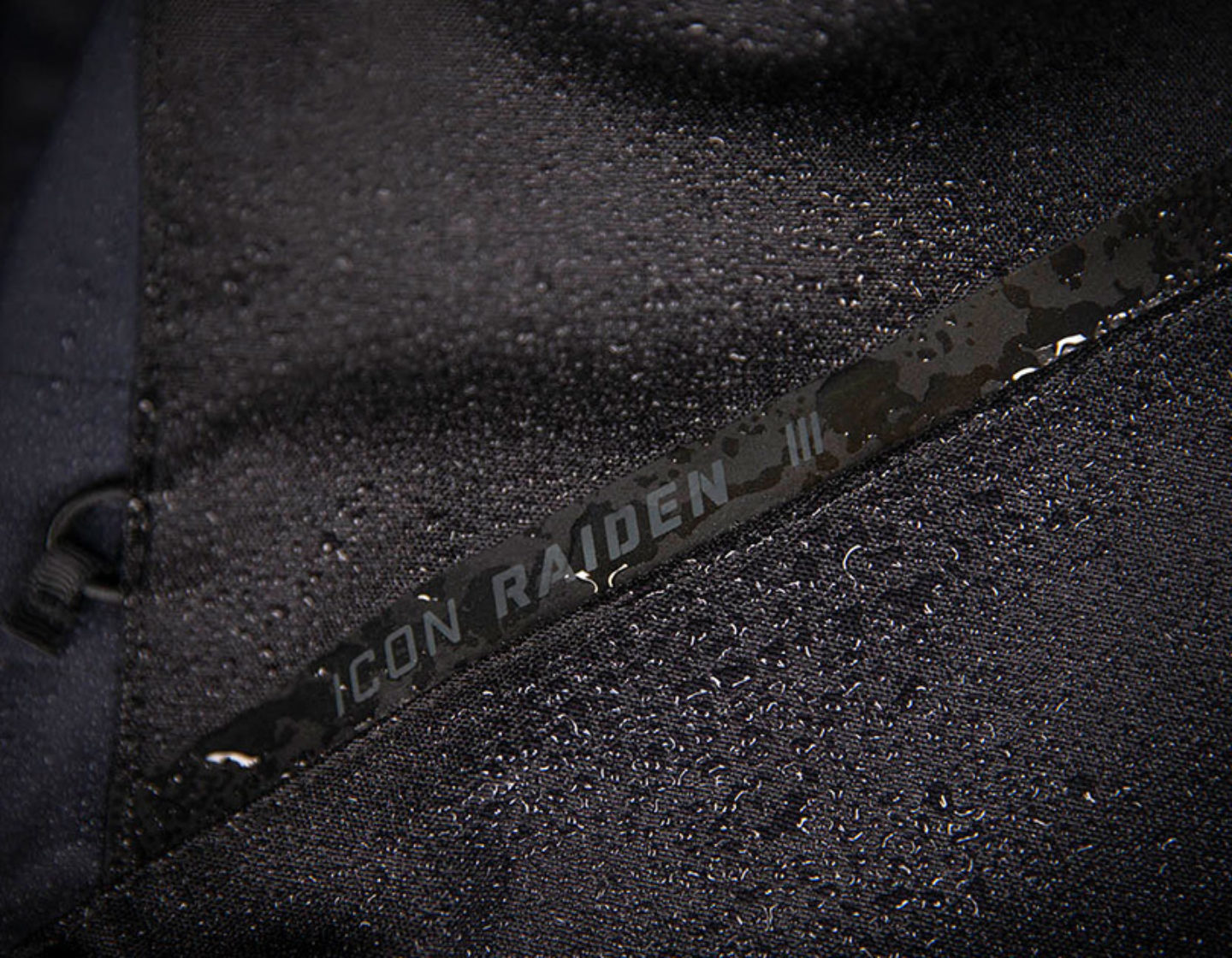 Мотокуртка Icon Raiden с технологией репеллента Teflon DWR не пропускает воду и не впитывает грязь. Основа изготовлена из трехслойной мембраны Dupont с высокими показателями влагостойкости и паропроницаемости — 10000. Перегрев и скопление влаги внутри куртки исключены благодаря продуманной системе вентиляции, обеспечивающей приточный и вытяжной потоки воздуха.