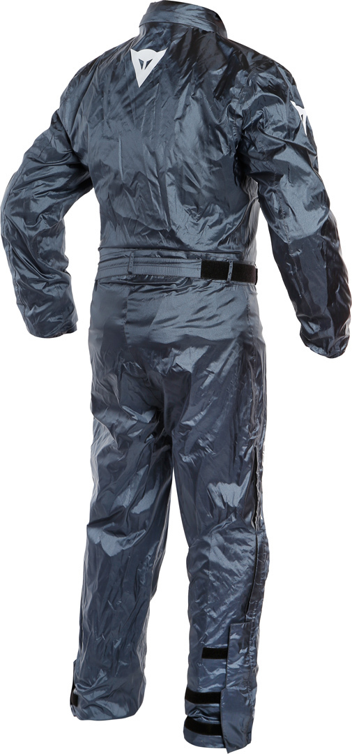 Мотодождевик Dainese Rain Suit из тонкой быстросохнущей ткани с грязеотталкивающими свойствами. Отлично защищает от дождя и дорожной грязи на больших скоростях. Представляет собой быстронадеваемый цельный комбинезон с рукавами, закрывает максимальную площадь тела. От ворота до колен застегивается на молнию, по всей длине защищенную от промокания клапаном. Легко подгоняется по объему поверх мотобот, мотобрюк и мотокуртки. В области пояса регулируется утяжками и ремнем.